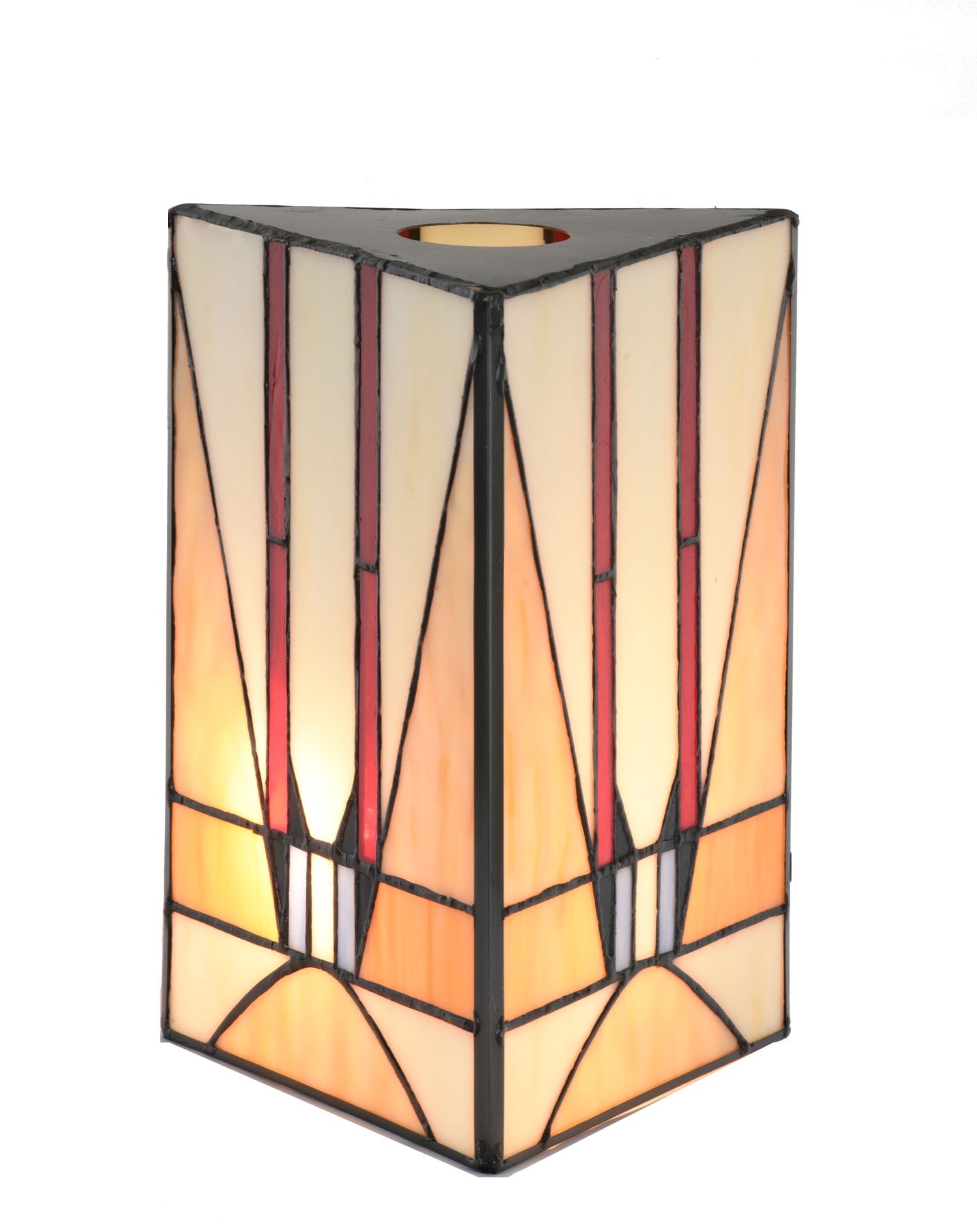 Abat-jour Amsterdam School en verre Tiffany. Excentrique et oh si beau... modélisé dans un triangle fantastique. L'abat-jour en verre est ouvert en bas.