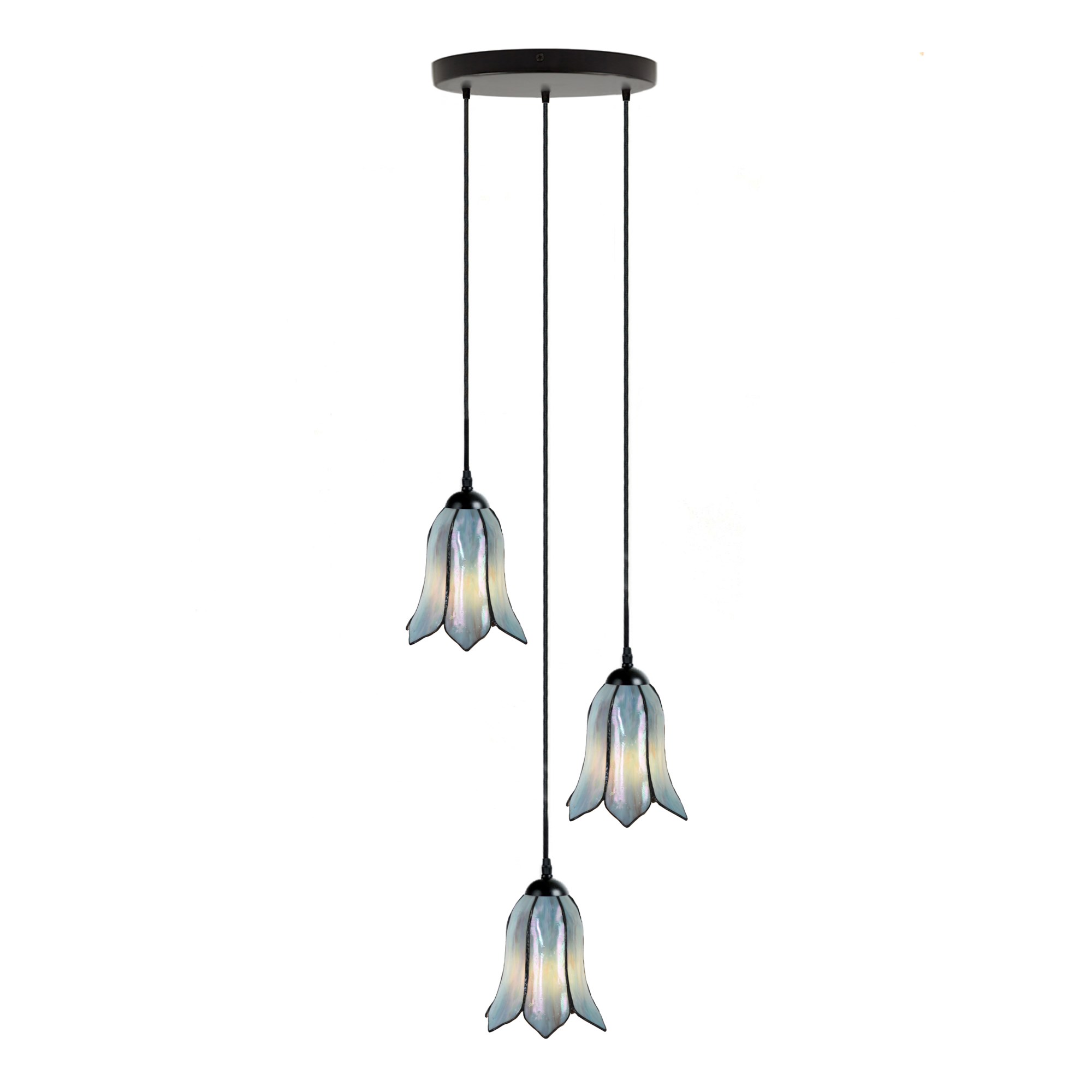 Les trois abat-jour en verre sont assemblés sur des cordons en lin Vintage. Les cordons sont à leur tour fixés à une plaque de plafond ronde de 25 cm de diamètre.
