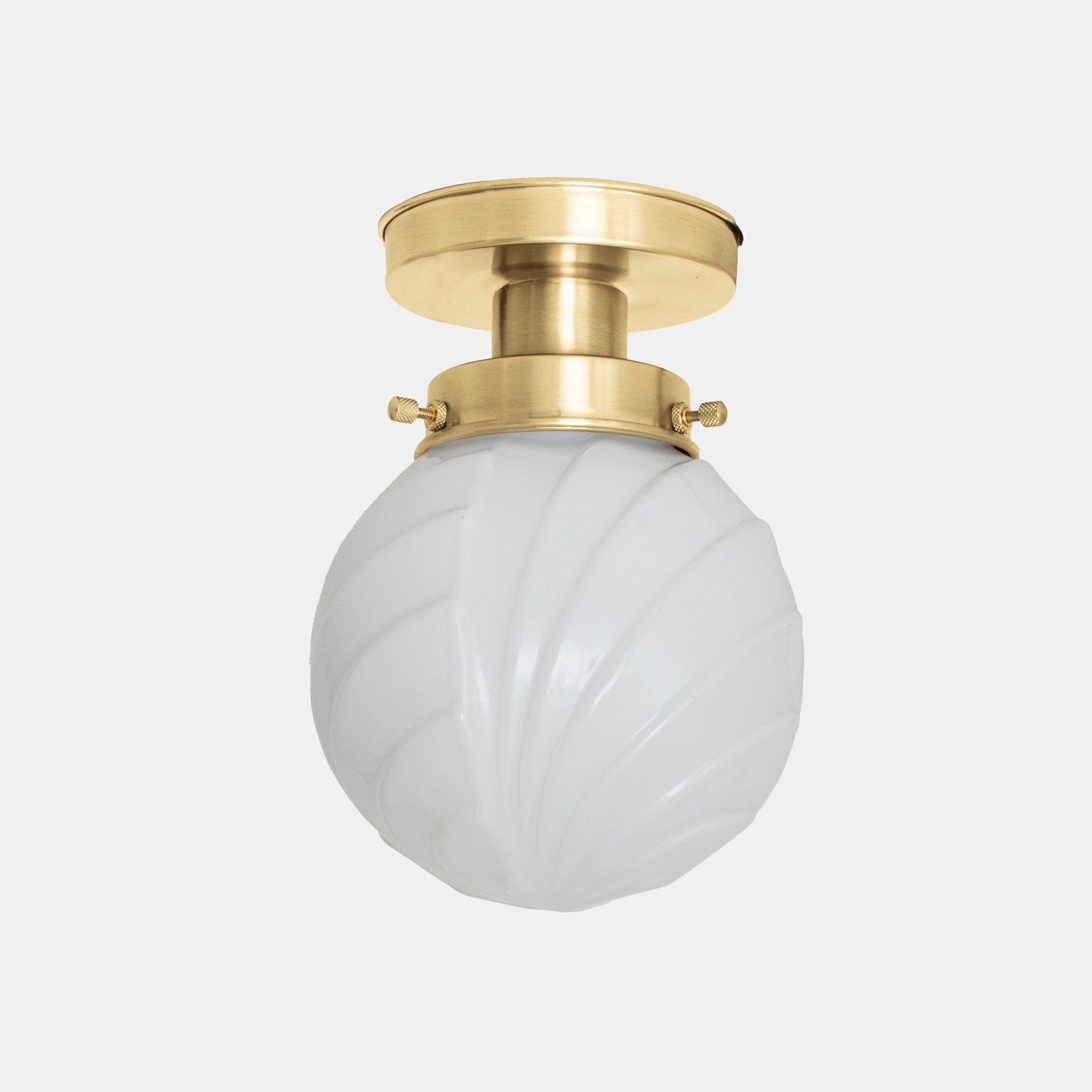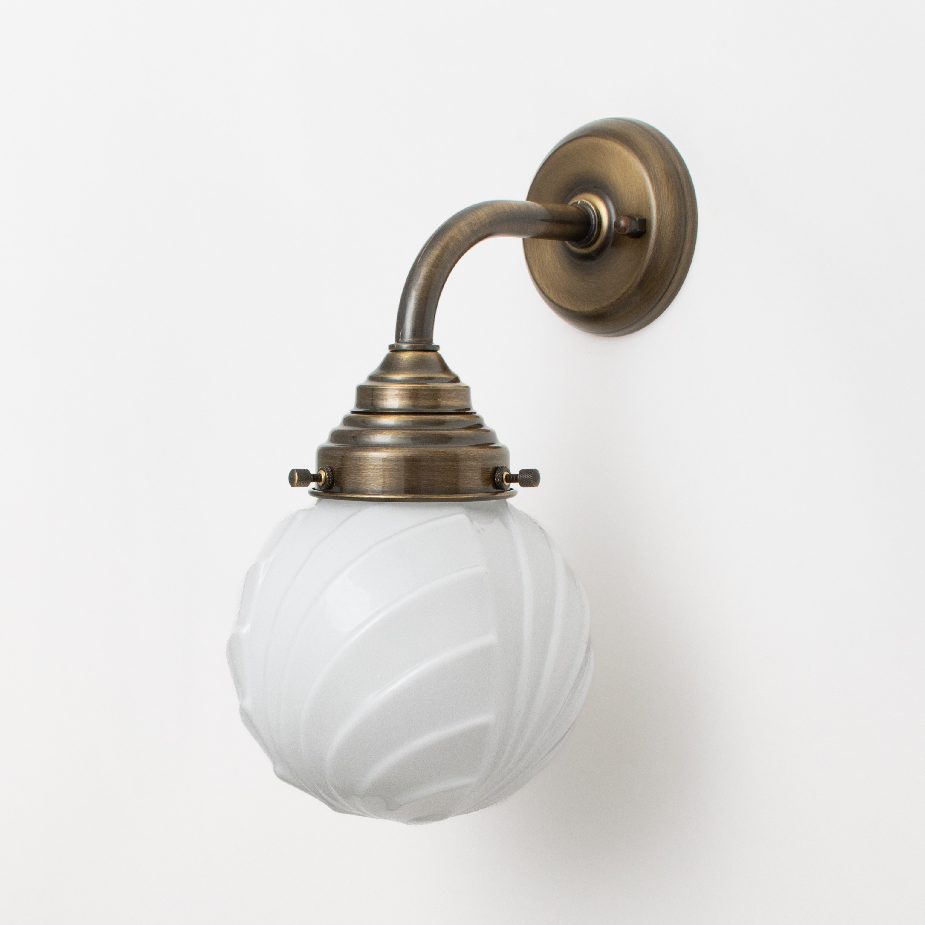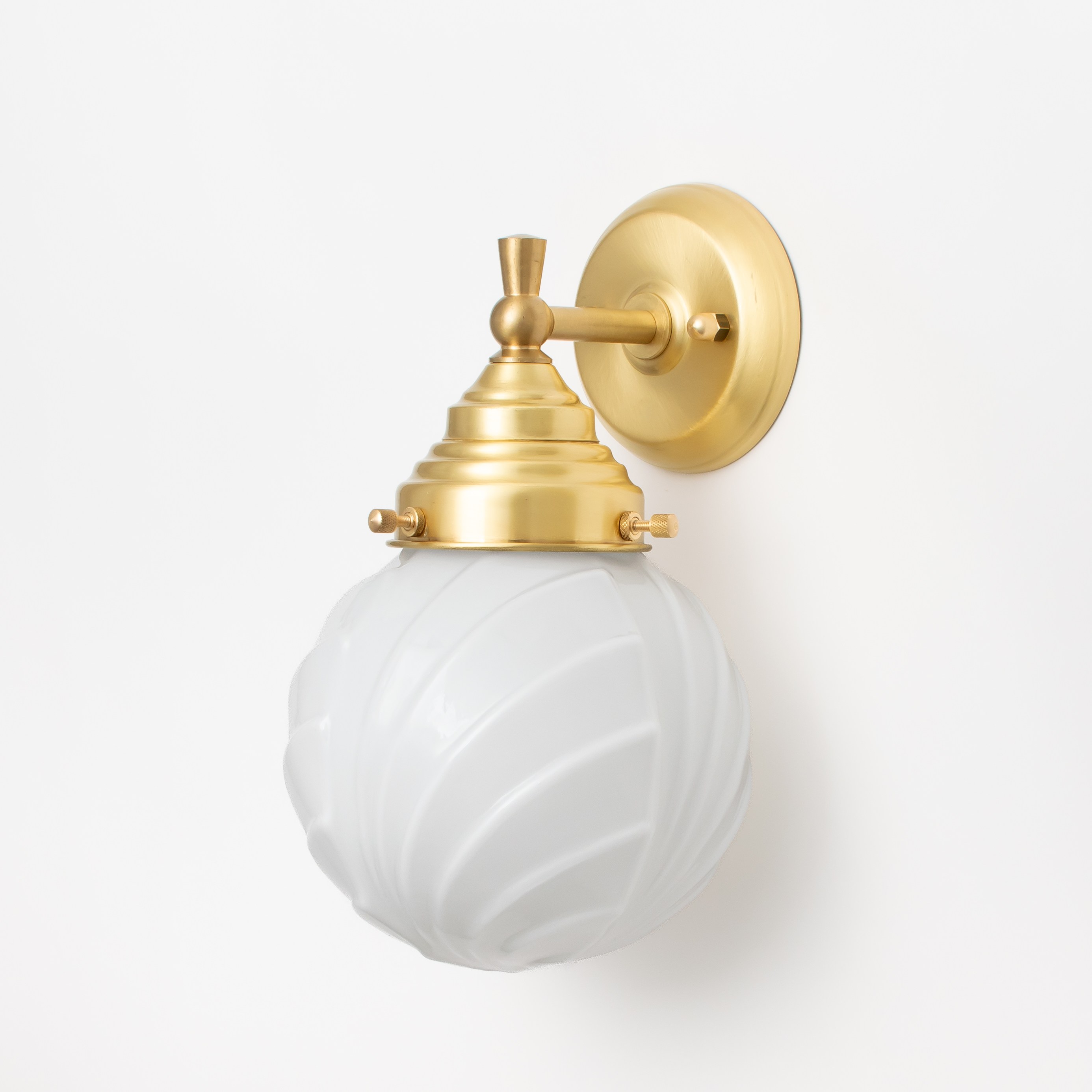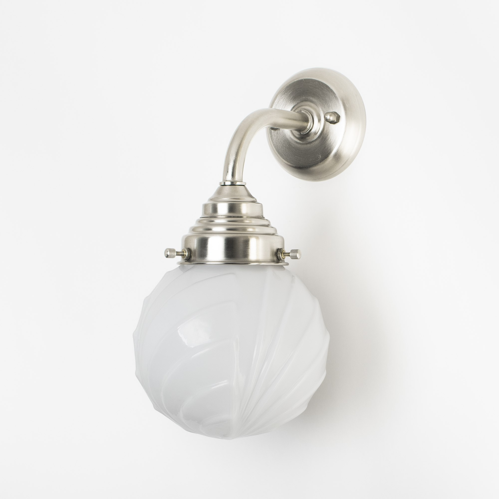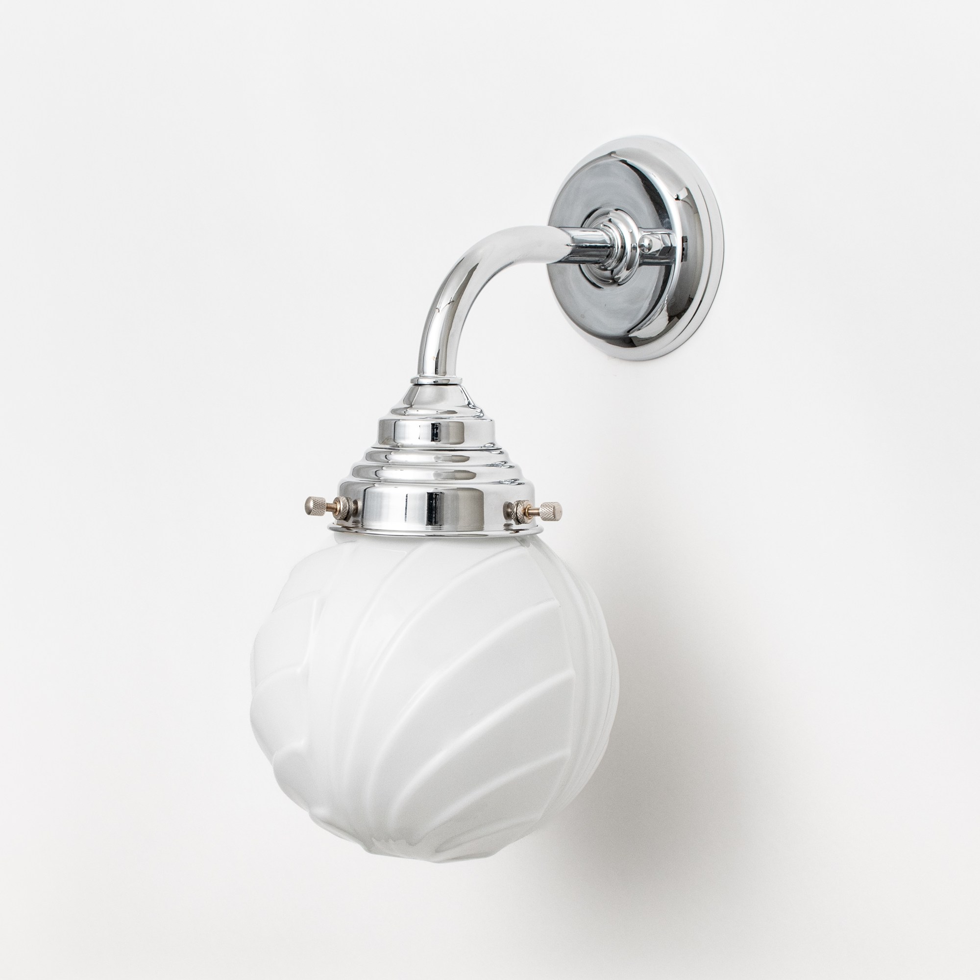 Abat-jour en verre de type bulbe Art Nouveau aux formes asymétriques et changeantes. Les lignes gracieuses et douces donnent un effet ludique. Verre blanc opale.