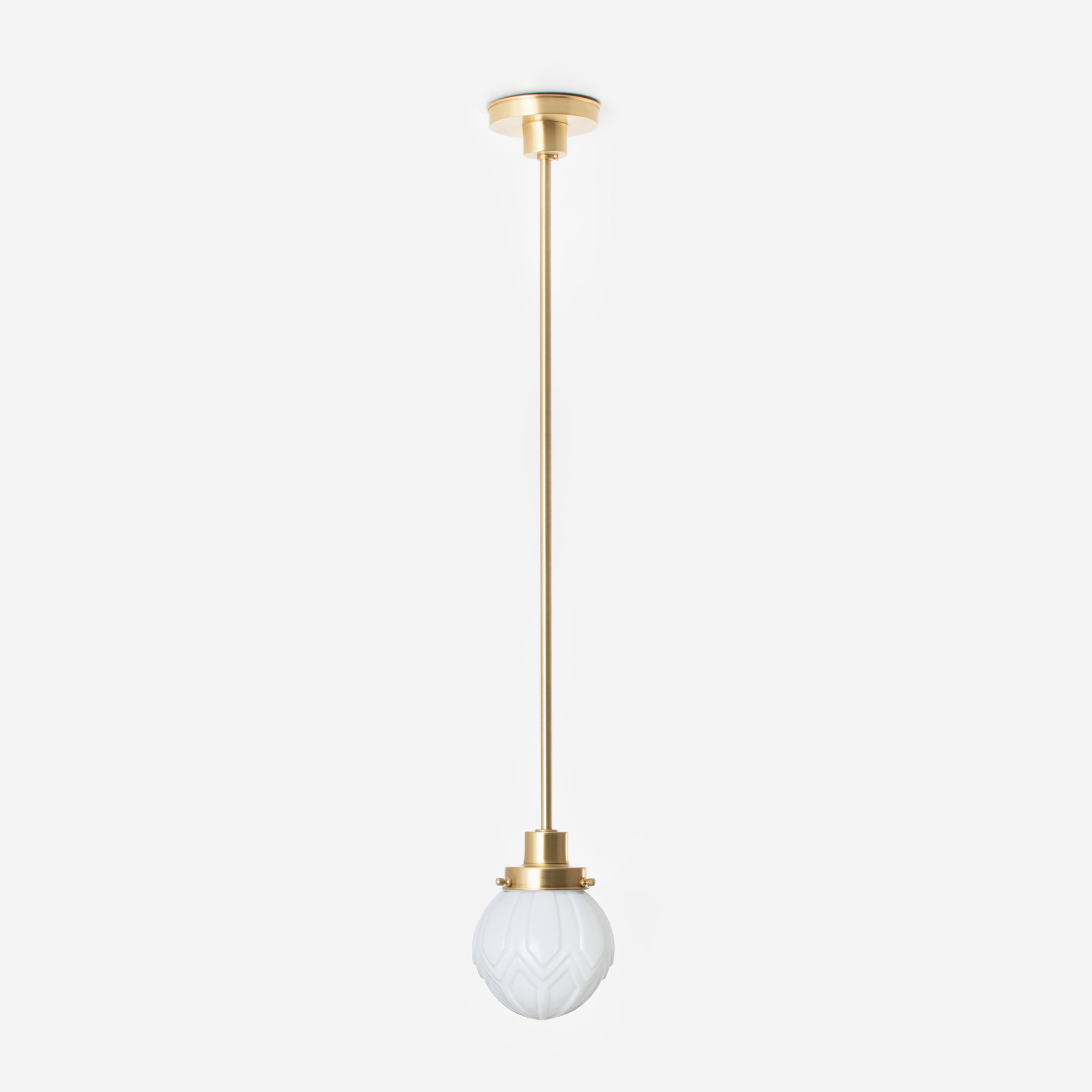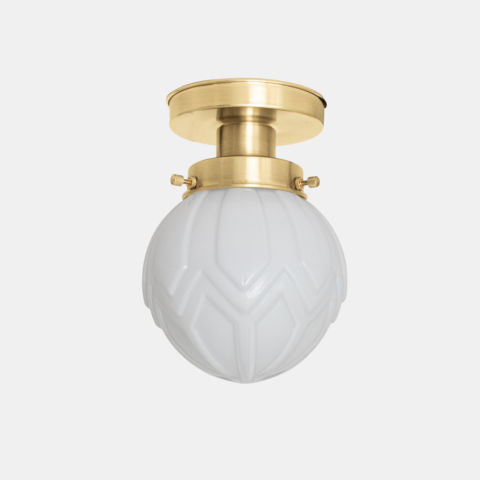 Ce modèle va conquérir de nombreux intérieurs. L'abat-jour en verre soufflé à la bouche, très réussi, est largement plébiscité, ce qui en fait un véritable coup de cœur ! Les lignes géométriques, caractéristiques du style Art déco, sont en parfaite harmonie. Verre blanc opalin.