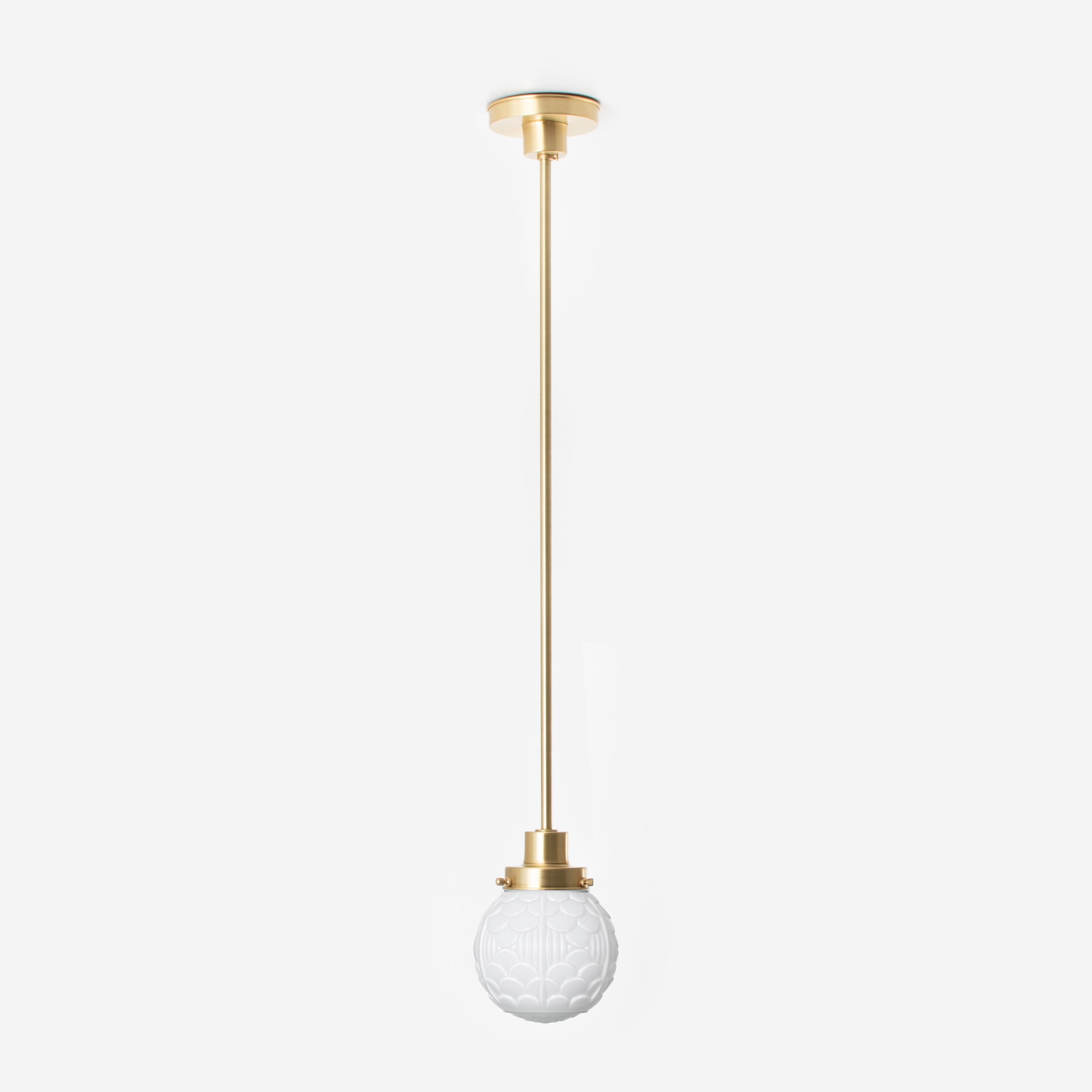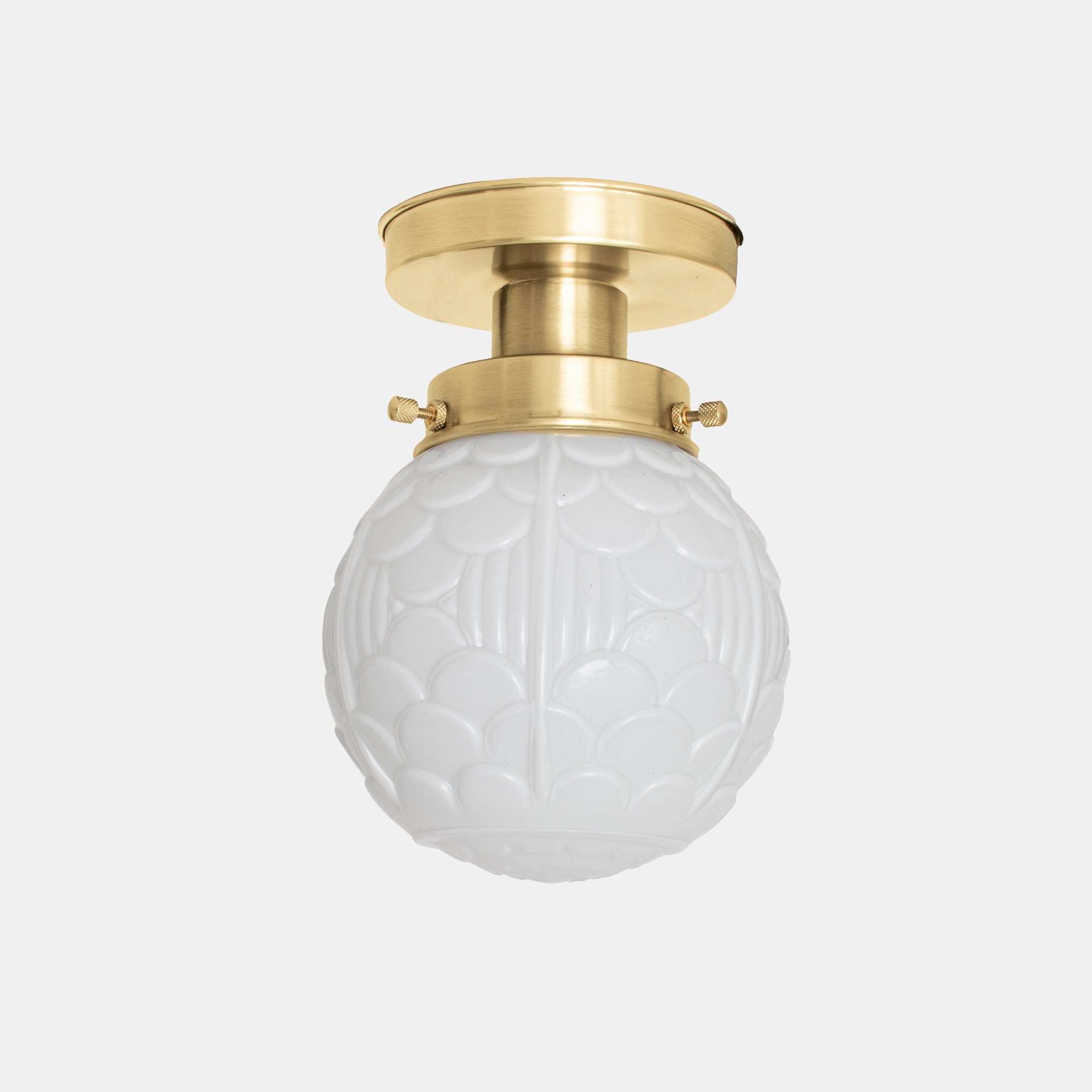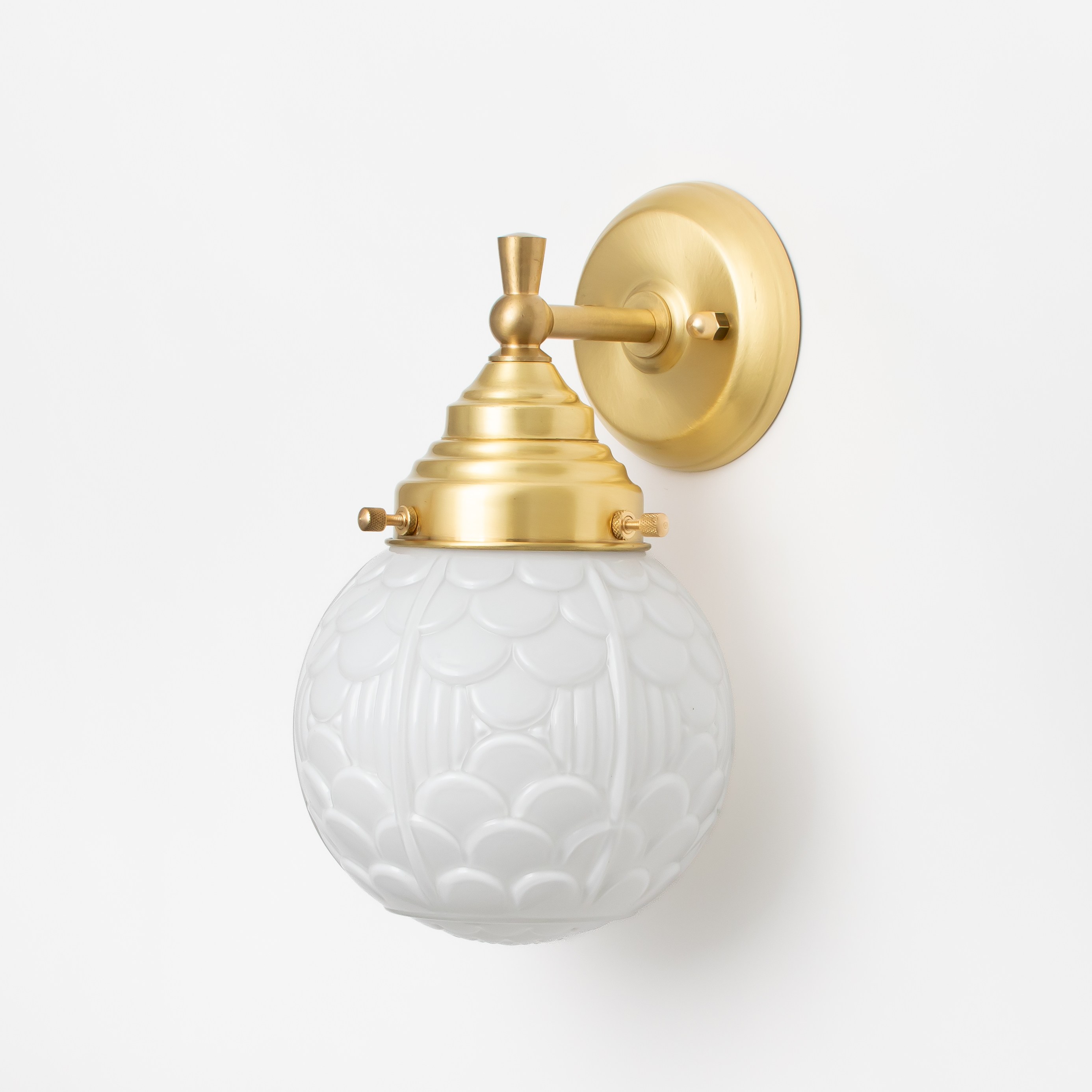 Une arcade de petits arcs s'appelle une arcature et est utilisée comme motif décoratif. Ces motifs sont souvent présents sur les tissus et les papiers peints. Il en va de même pour ce fantastique abat-jour en verre soufflé à la bouche d'un blanc opalin.