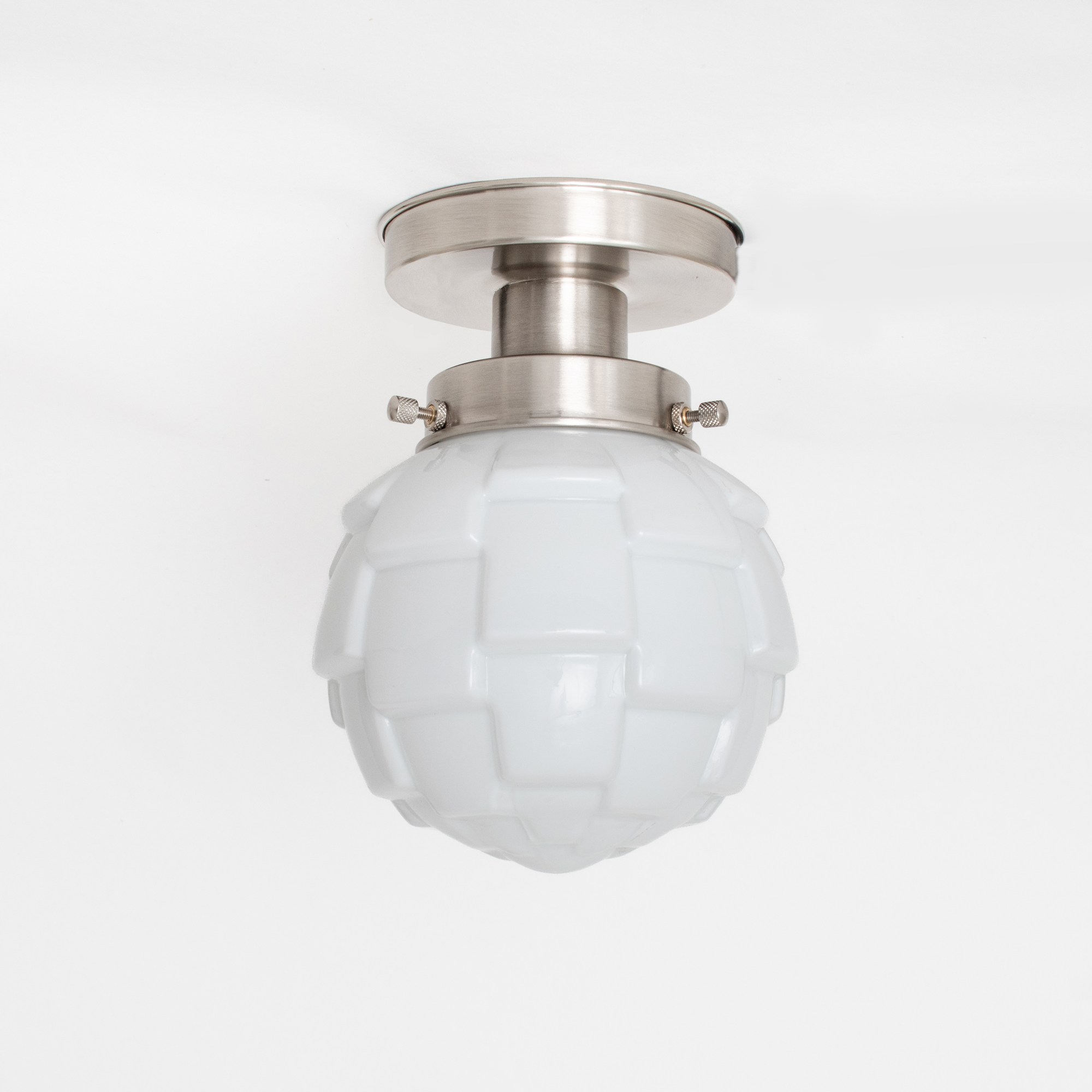 Avec le robuste abat-jour en verre Art déco Bretagne, vous êtes toujours en vacances et dans la sphère de l'art ! Le modèle est réalisé en blanc opale.