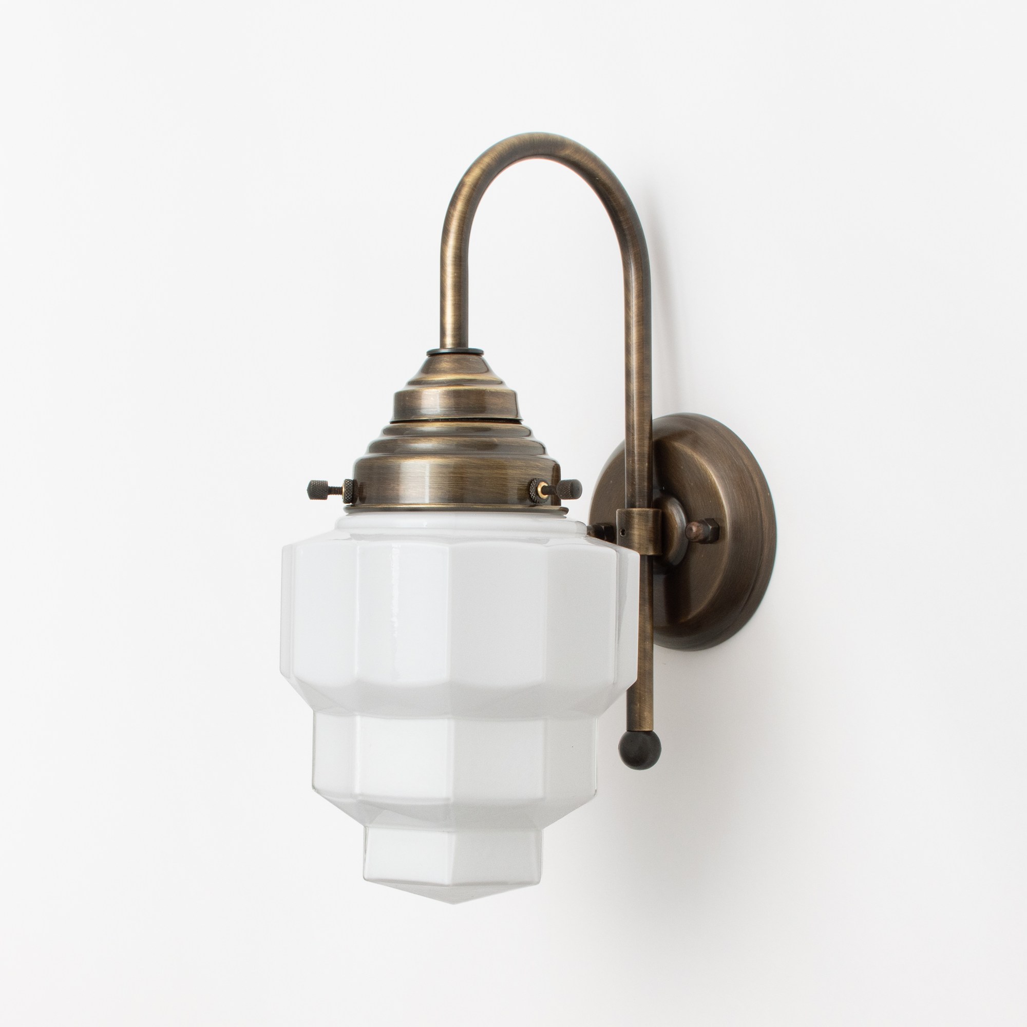 Spectaculaire abat-jour en verre Art Déco soufflé à la bouche. Les sols sont constitués de formes angulaires et géométriques. Verre blanc opale.
