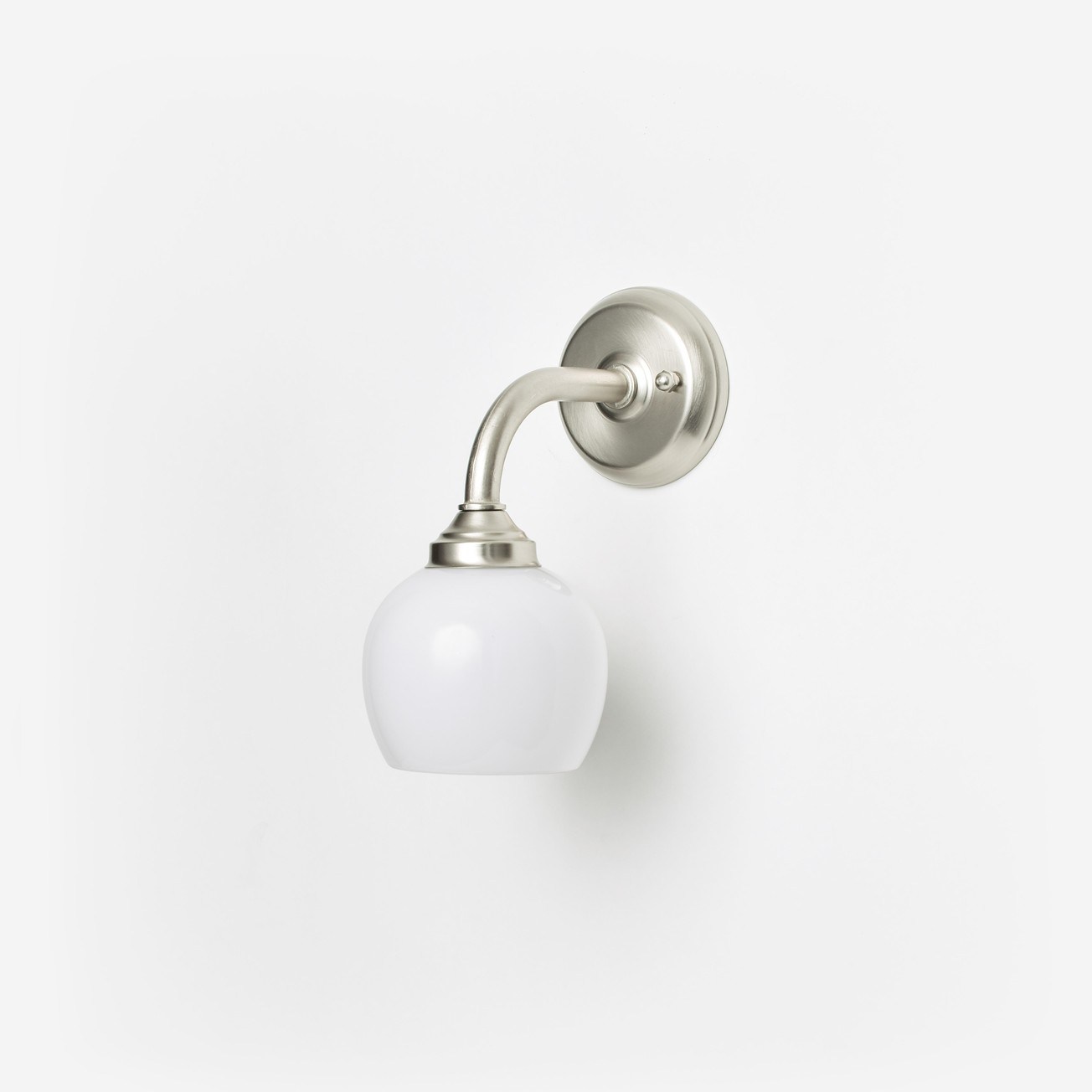 Abat-jour en verre blanc de forme ronde, ouvert vers le bas.