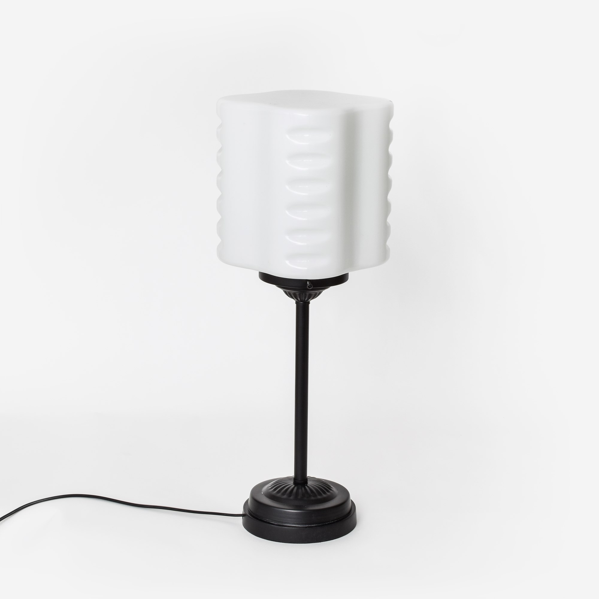 Abat-jour en verre soufflé à la bouche dans le style de l'école d'Amsterdam. Décoratif, expressif et stimulant. Verre blanc opale.