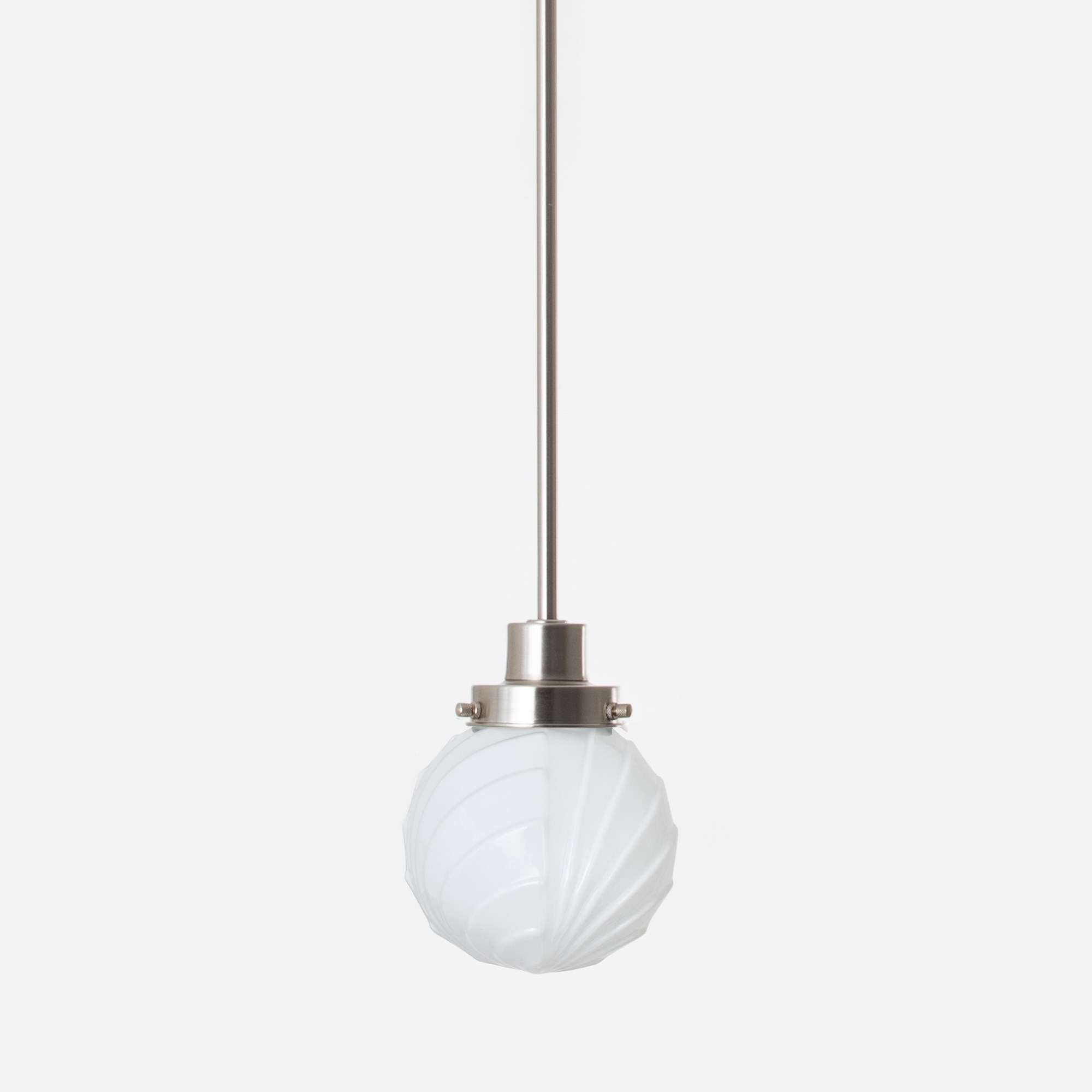 Abat-jour en verre de type bulbe Art Nouveau aux formes asymétriques et changeantes. Les lignes gracieuses et douces donnent un effet ludique. Verre blanc opale.