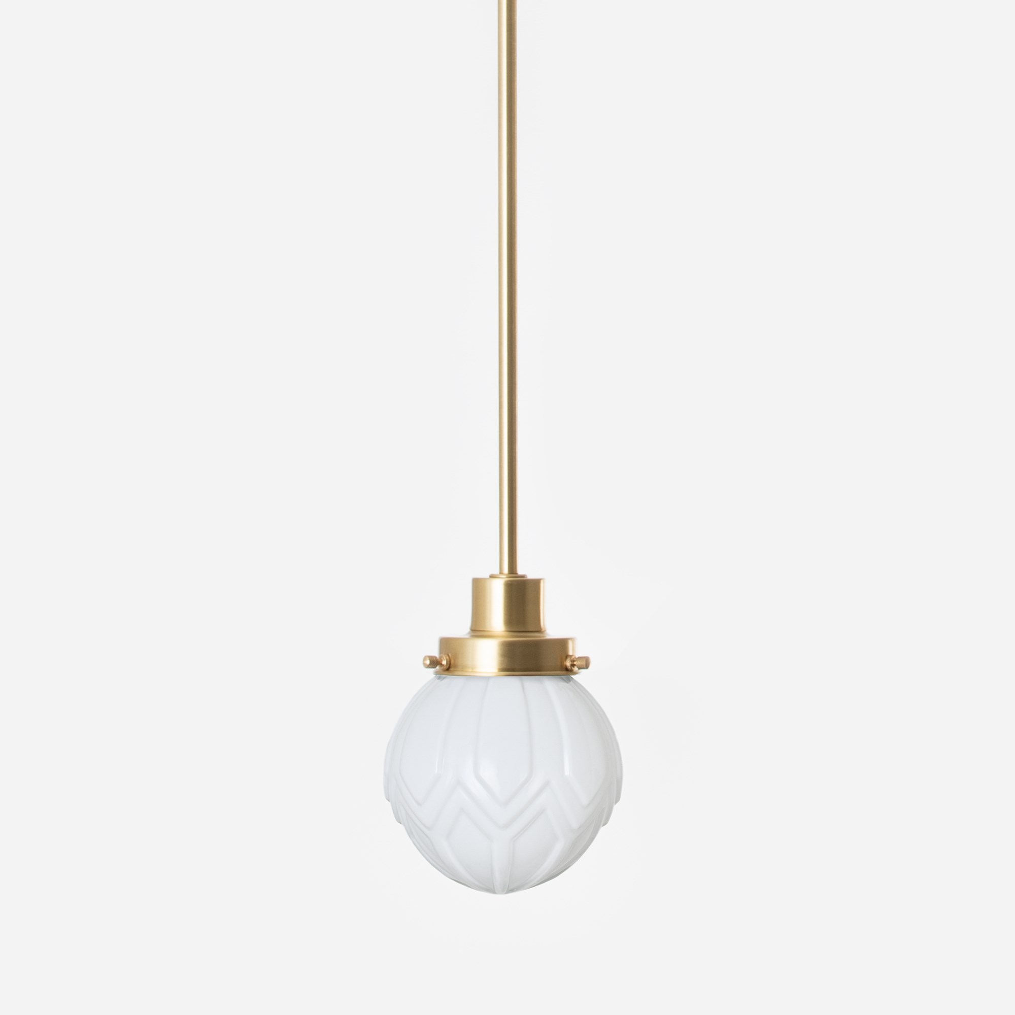 Ce modèle va conquérir de nombreux intérieurs. L'abat-jour en verre soufflé à la bouche, très réussi, est largement plébiscité, ce qui en fait un véritable coup de cœur ! Les lignes géométriques, caractéristiques du style Art déco, sont en parfaite harmonie. Verre blanc opalin.