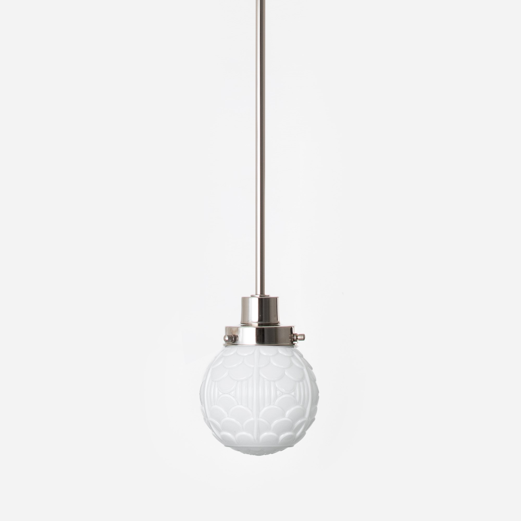Une arcade de petits arcs s'appelle une arcature et est utilisée comme motif décoratif. Ces motifs sont souvent présents sur les tissus et les papiers peints. Il en va de même pour ce fantastique abat-jour en verre soufflé à la bouche d'un blanc opalin.