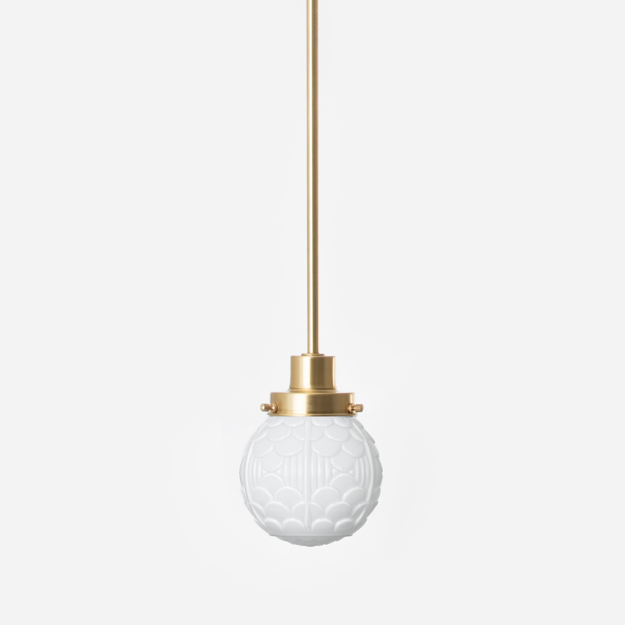 Une arcade de petits arcs s'appelle une arcature et est utilisée comme motif décoratif. Ces motifs sont souvent présents sur les tissus et les papiers peints. Il en va de même pour ce fantastique abat-jour en verre soufflé à la bouche d'un blanc opalin.