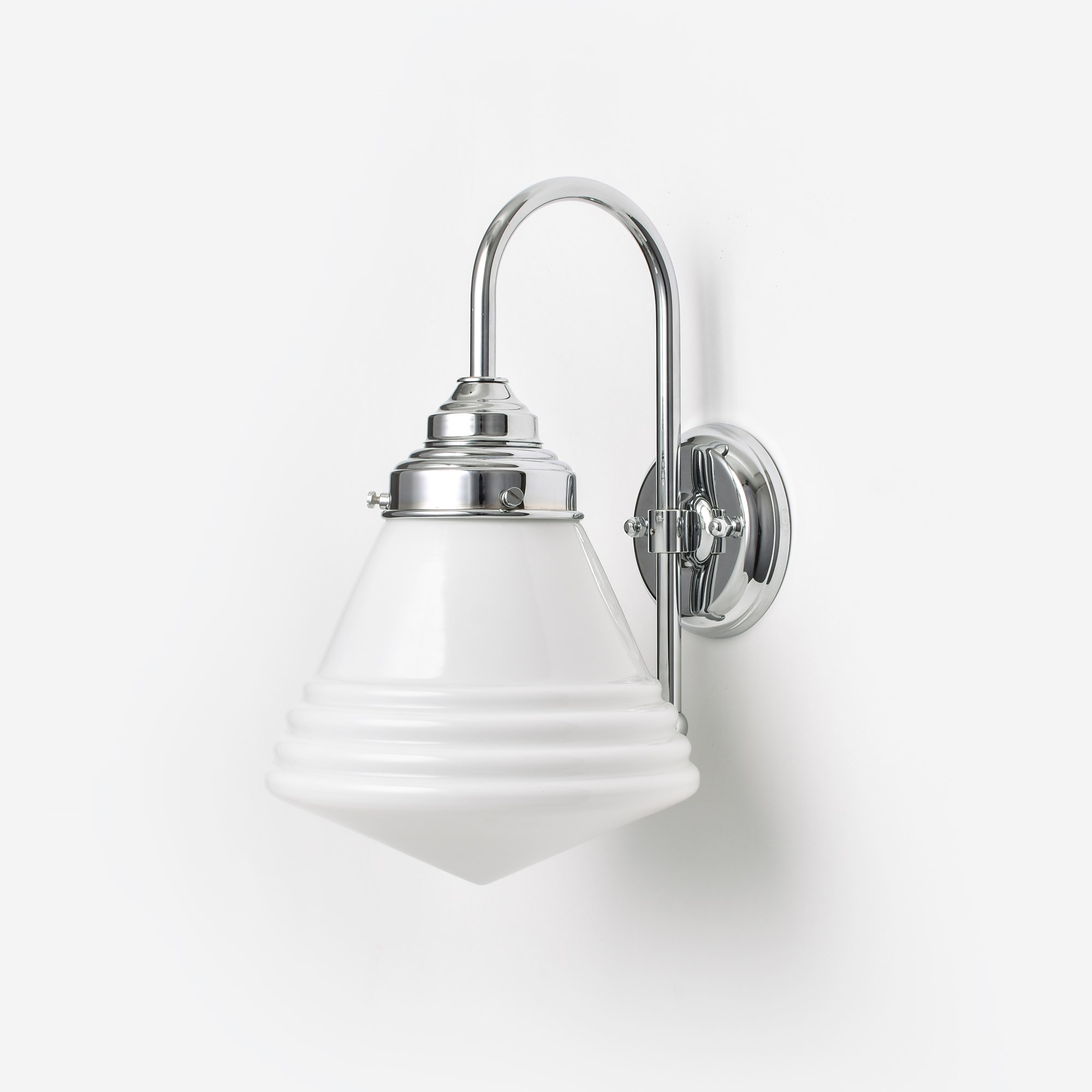 Un abat-jour Art Déco au design épuré. Le verre est soufflé à la bouche et de forme conique. L'abat-jour est effilé et présente des détails côtelés subtils. Verre blanc opale.