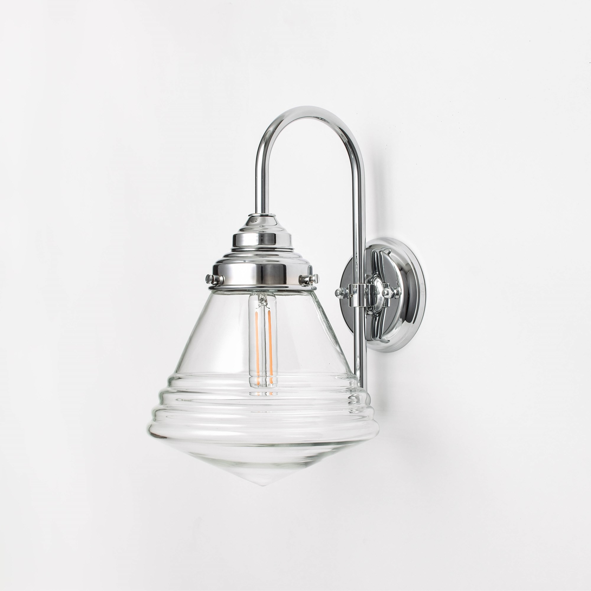 Le luminaire luxueux est nickelé brillant.