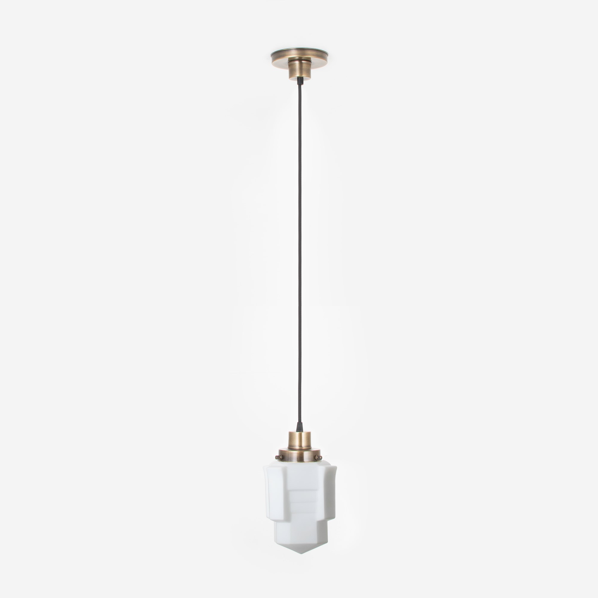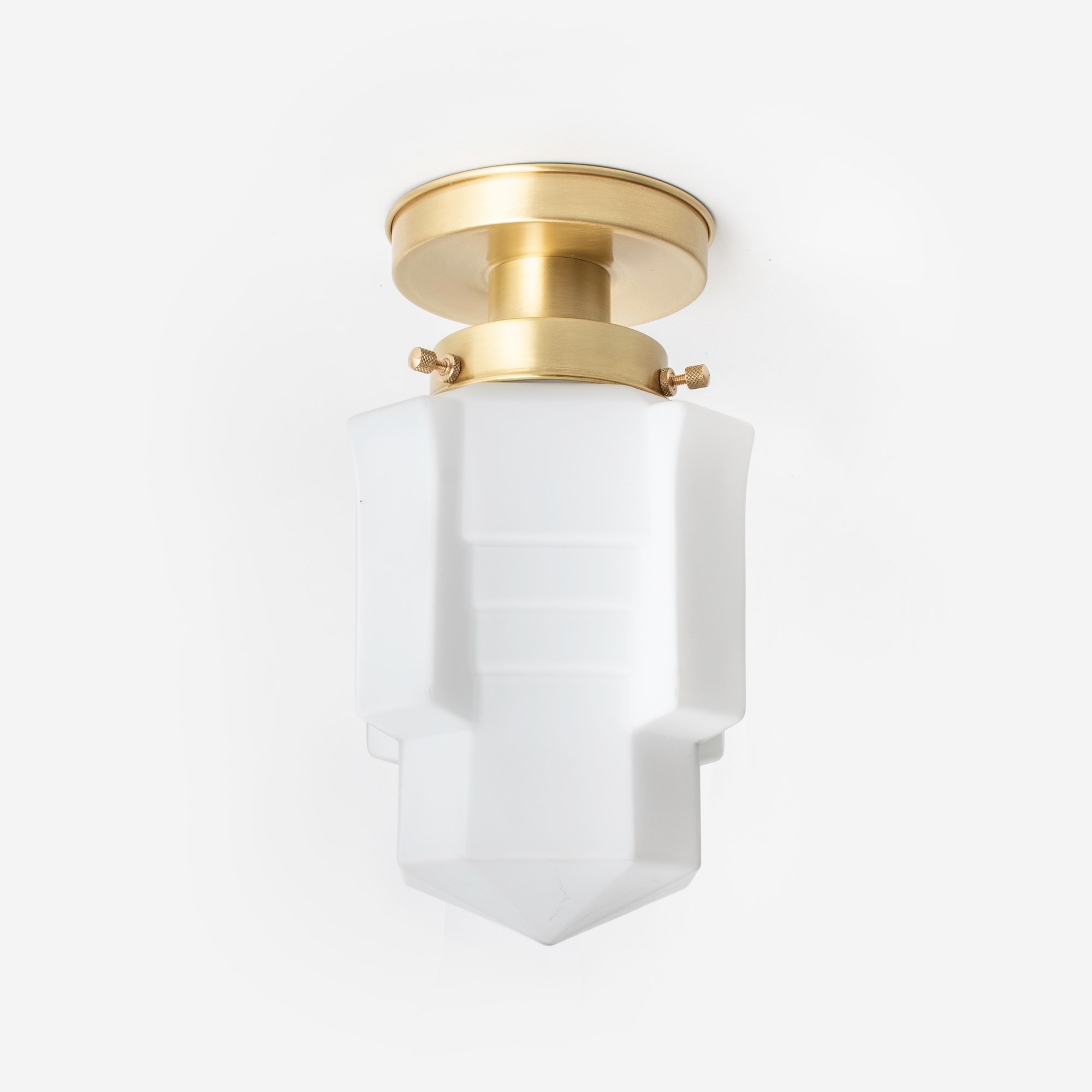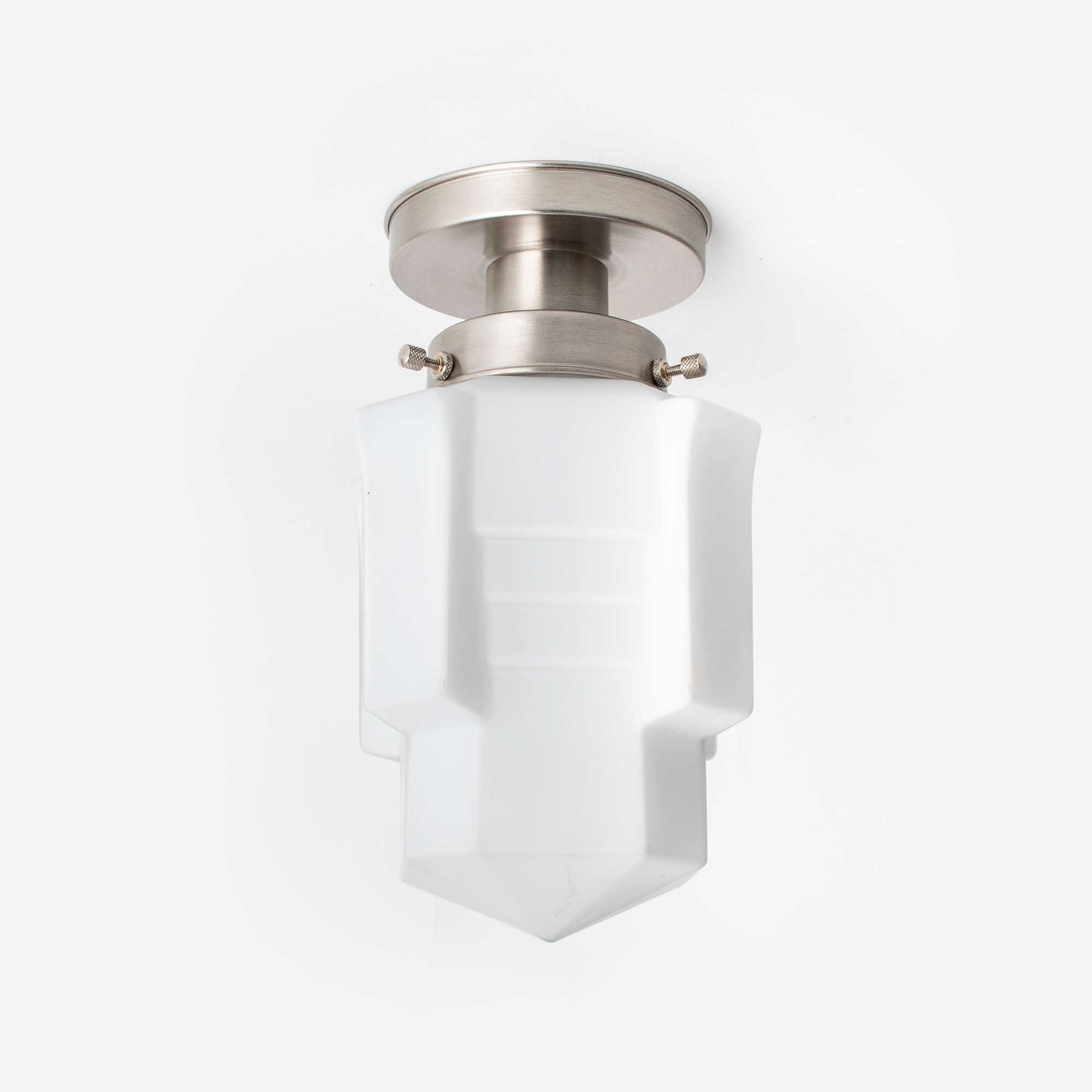 Cet abat-jour en verre aux formes extravagantes de style Art déco français porte le célèbre nom Apollo et porte bien son nom en toute beauté. Verre opale blanc maté.