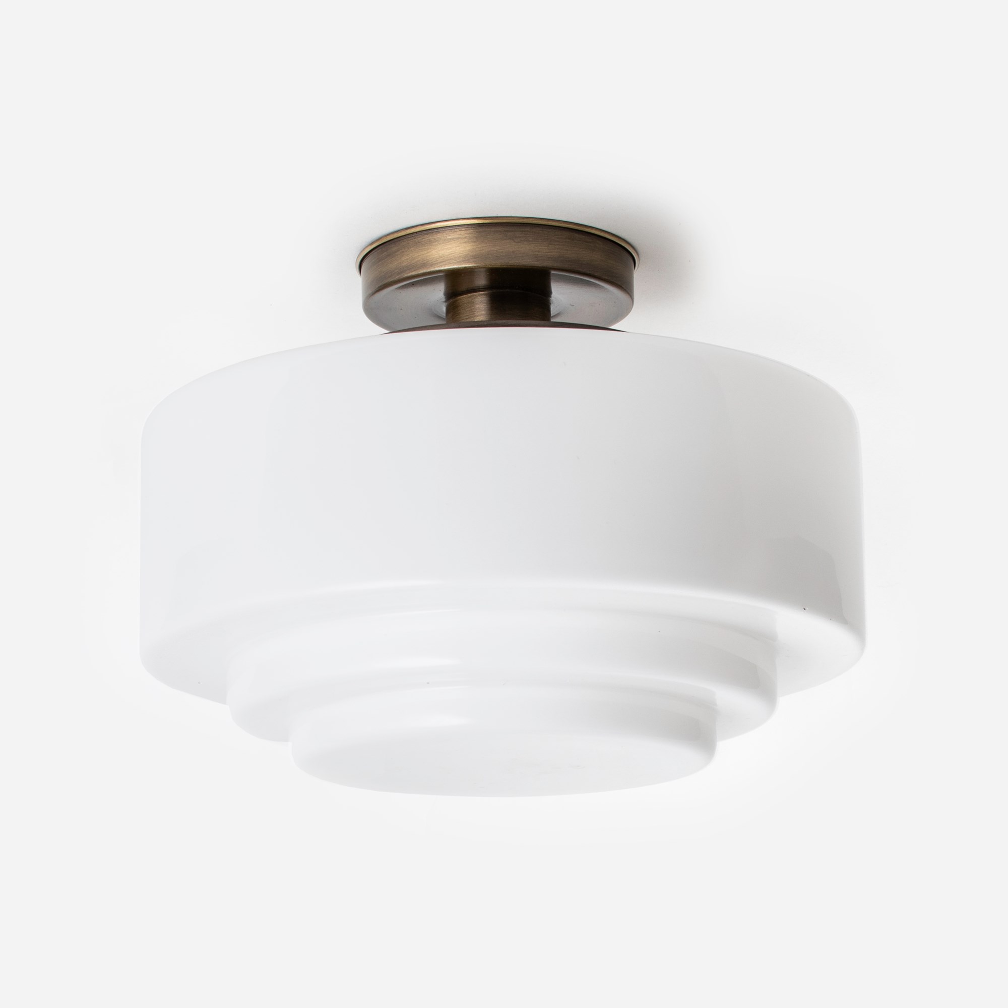 Une forme typique de l'Art déco : un abat-jour en verre avec une large marche en haut et de subtiles couches étagées en bas.