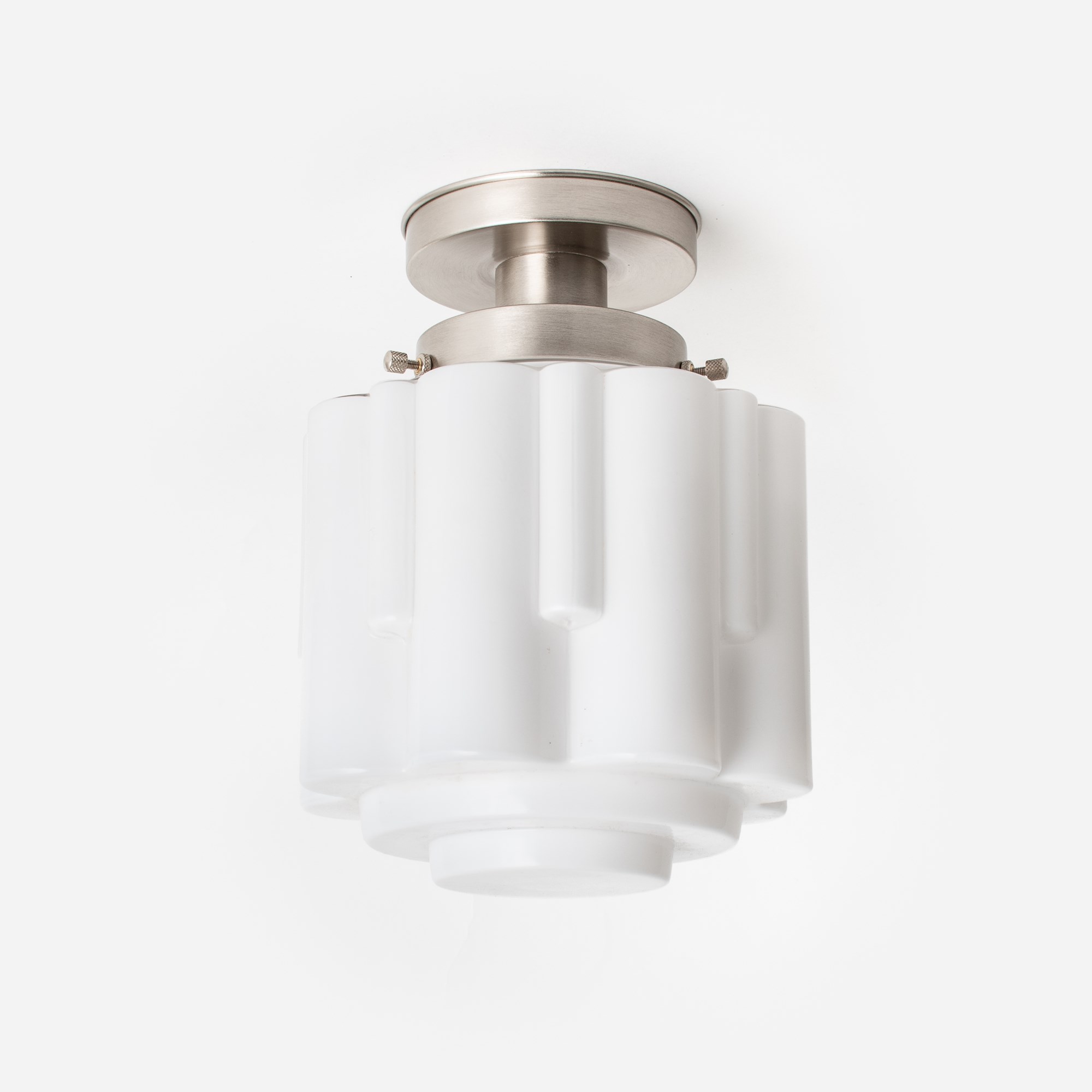 Cercle d'abat-jour en verre exubérant. Un ajout élégant à tout intérieur. Inspiré par l'architecture de l'école d'Amsterdam. Verre blanc opalin soufflé à la bouche.