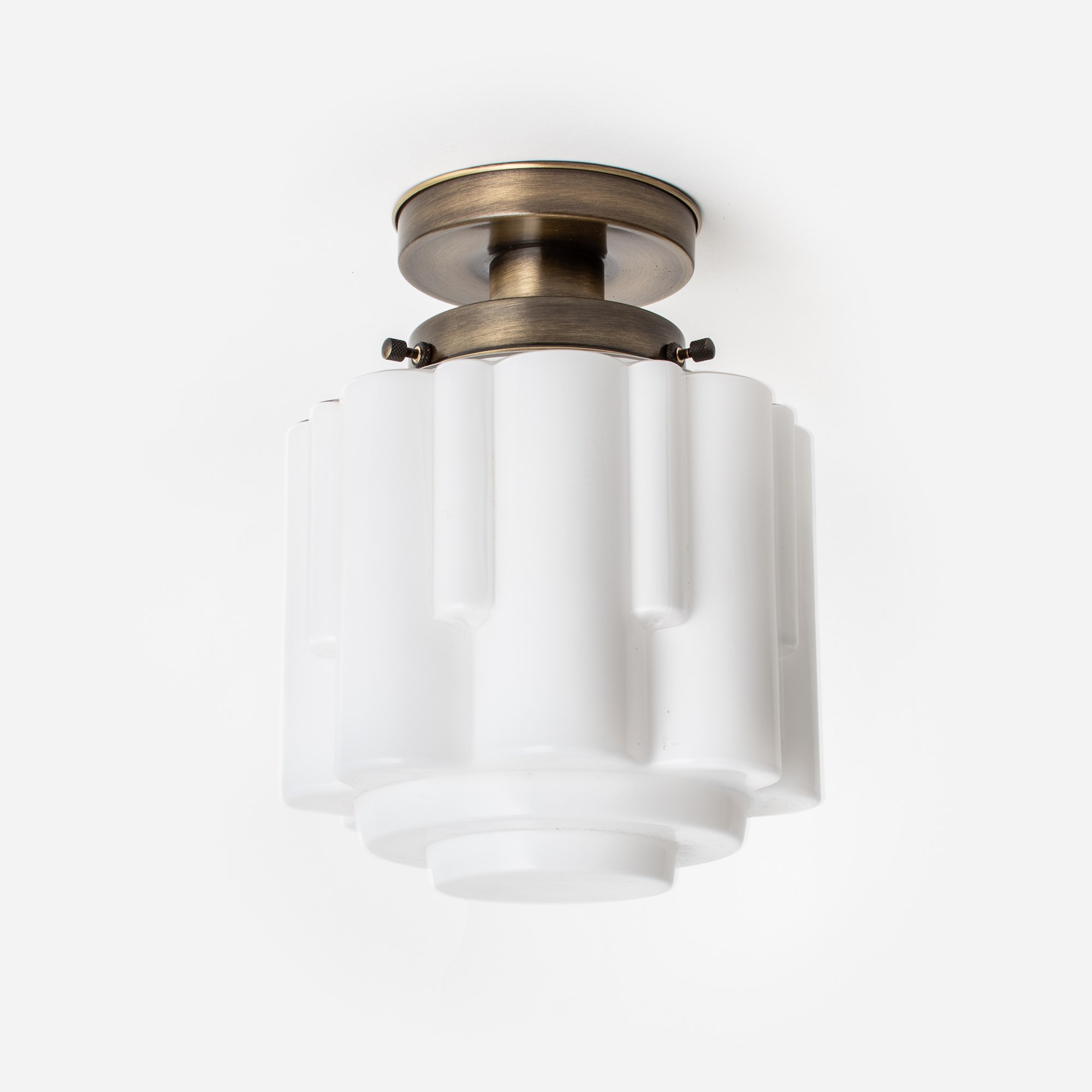 Cercle d'abat-jour en verre exubérant. Un ajout élégant à tout intérieur. Inspiré par l'architecture de l'école d'Amsterdam. Verre blanc opalin soufflé à la bouche.