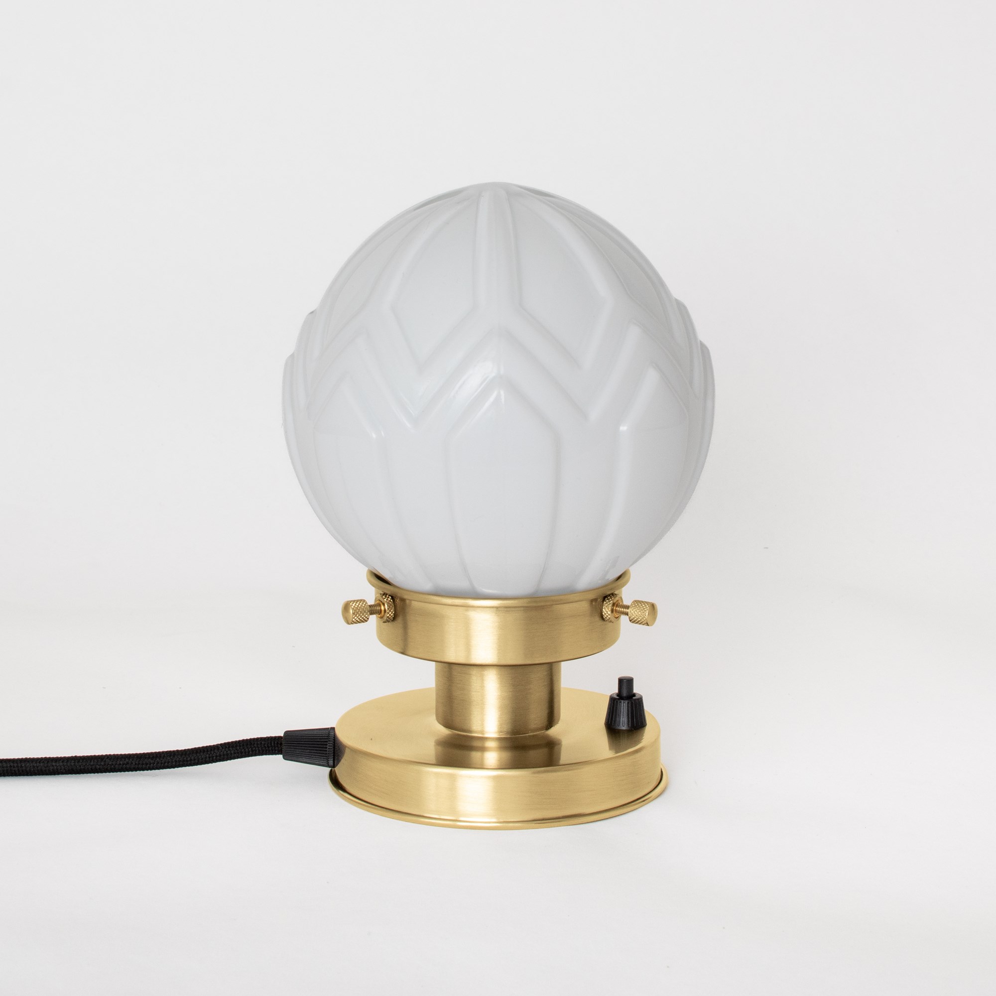 Ce modèle va conquérir de nombreux intérieurs. L'abat-jour en verre soufflé à la bouche, très réussi, est largement plébiscité, ce qui en fait un véritable coup de cœur ! Les lignes géométriques, caractéristiques du style Art déco, sont en parfaite harmonie. Verre blanc opalin.