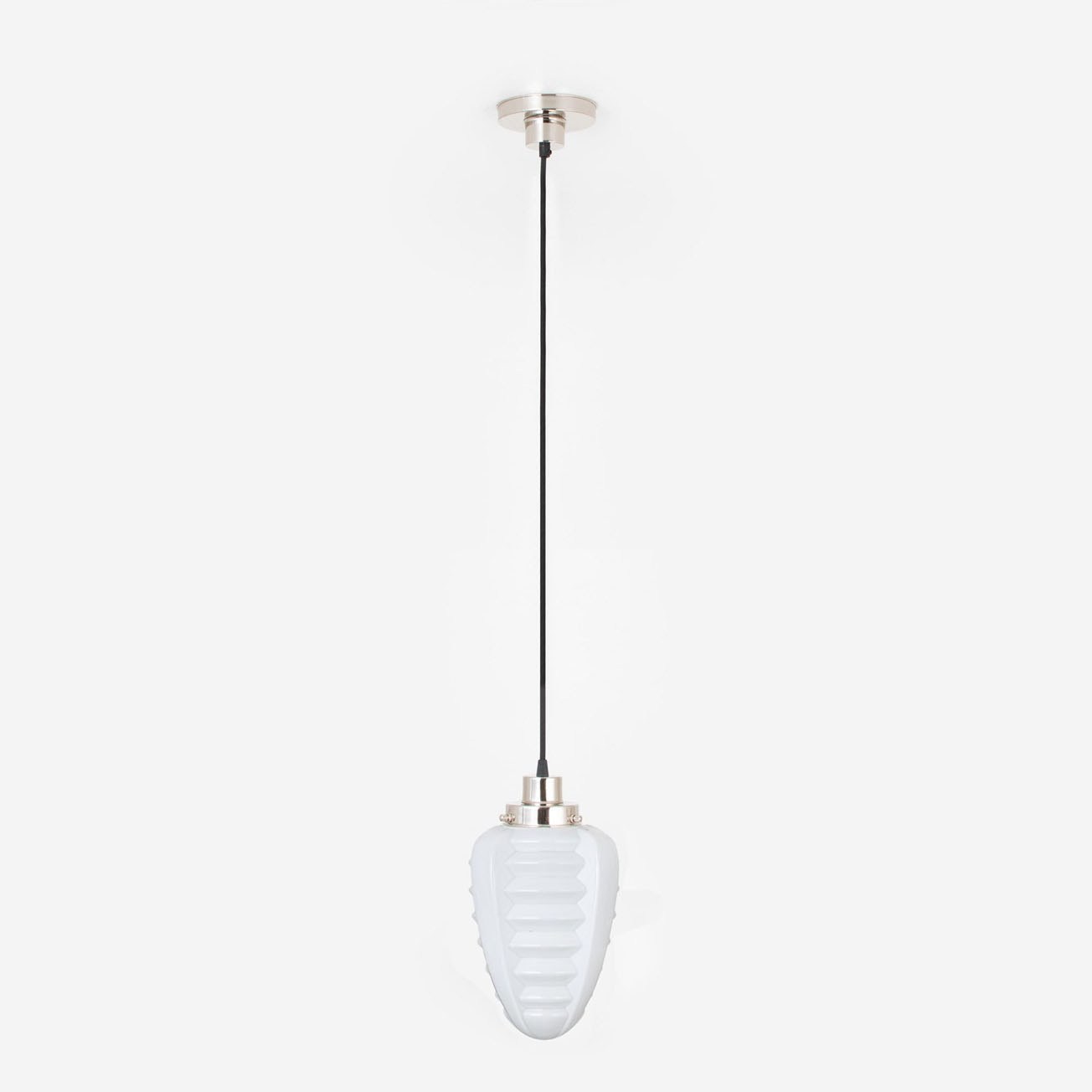 Le luminaire luxueux est nickelé brillant.