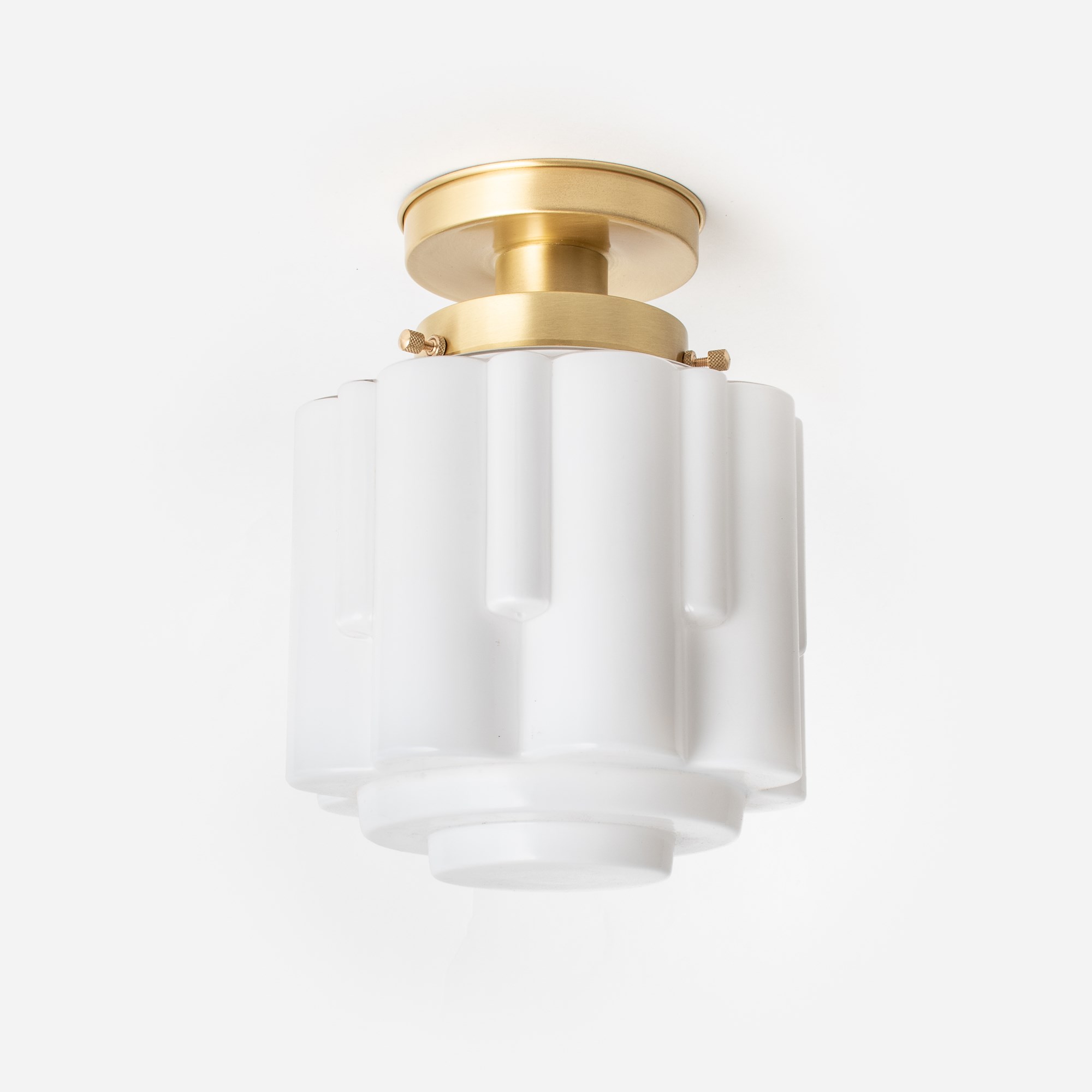 Cercle d'abat-jour en verre exubérant. Un ajout élégant à tout intérieur. Inspiré par l'architecture de l'école d'Amsterdam. Verre blanc opalin soufflé à la bouche.