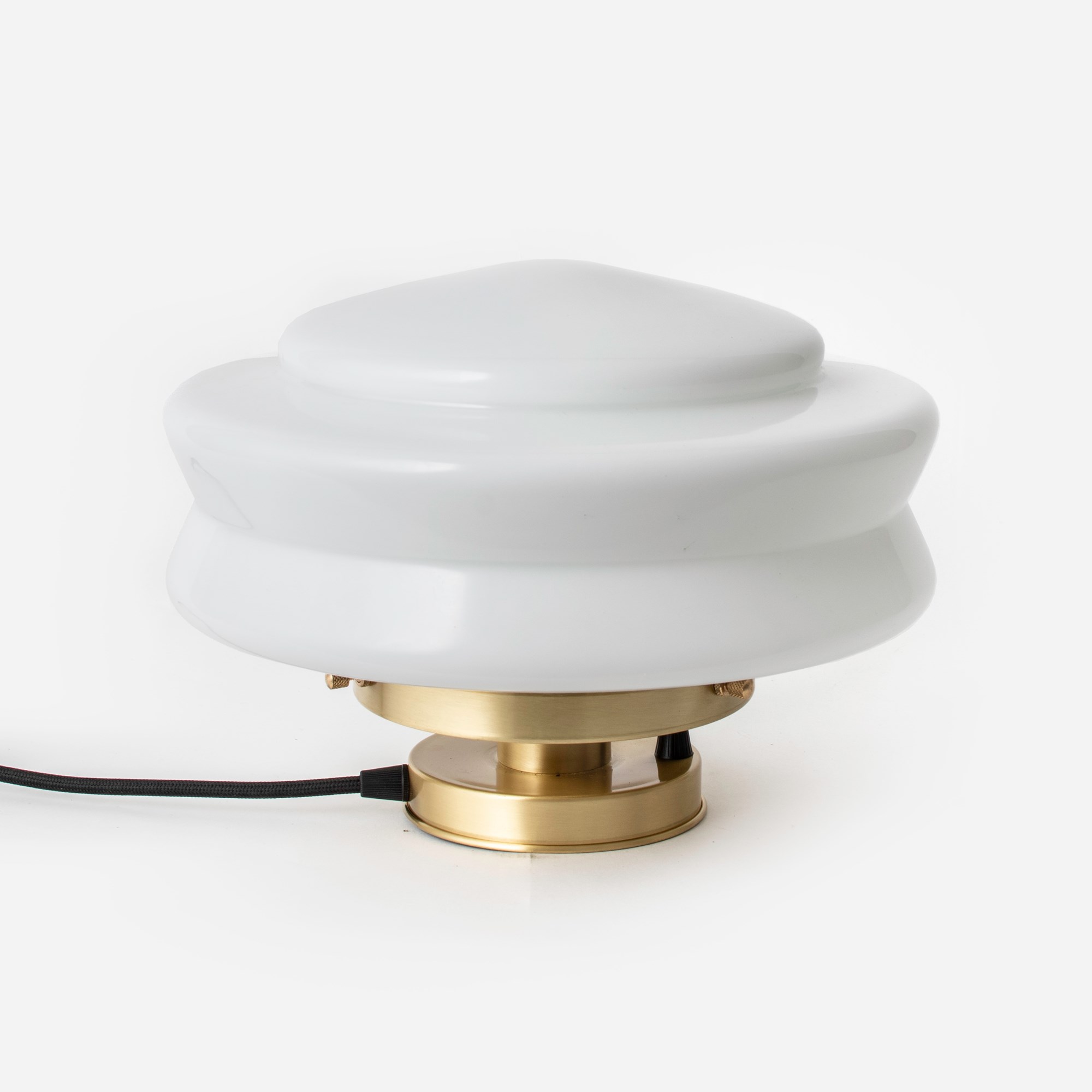 Cette lampe de table durable peut toujours être équipée d'un abat-jour en verre différent !