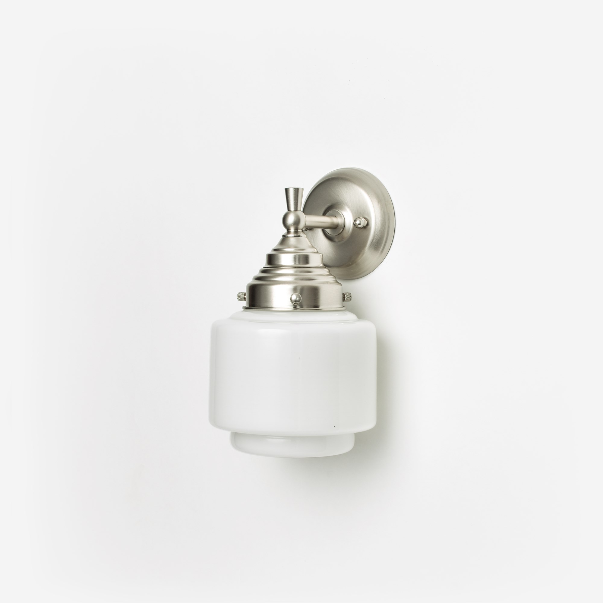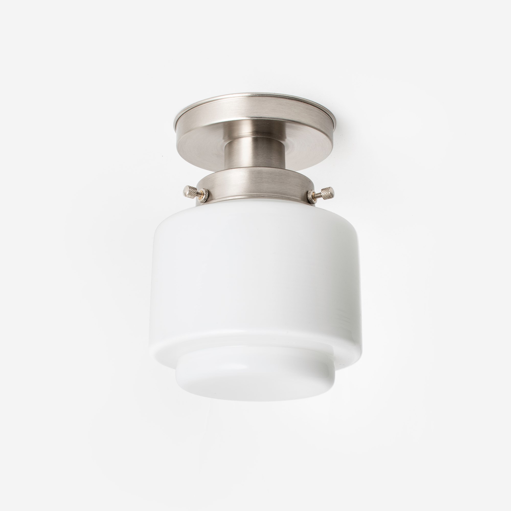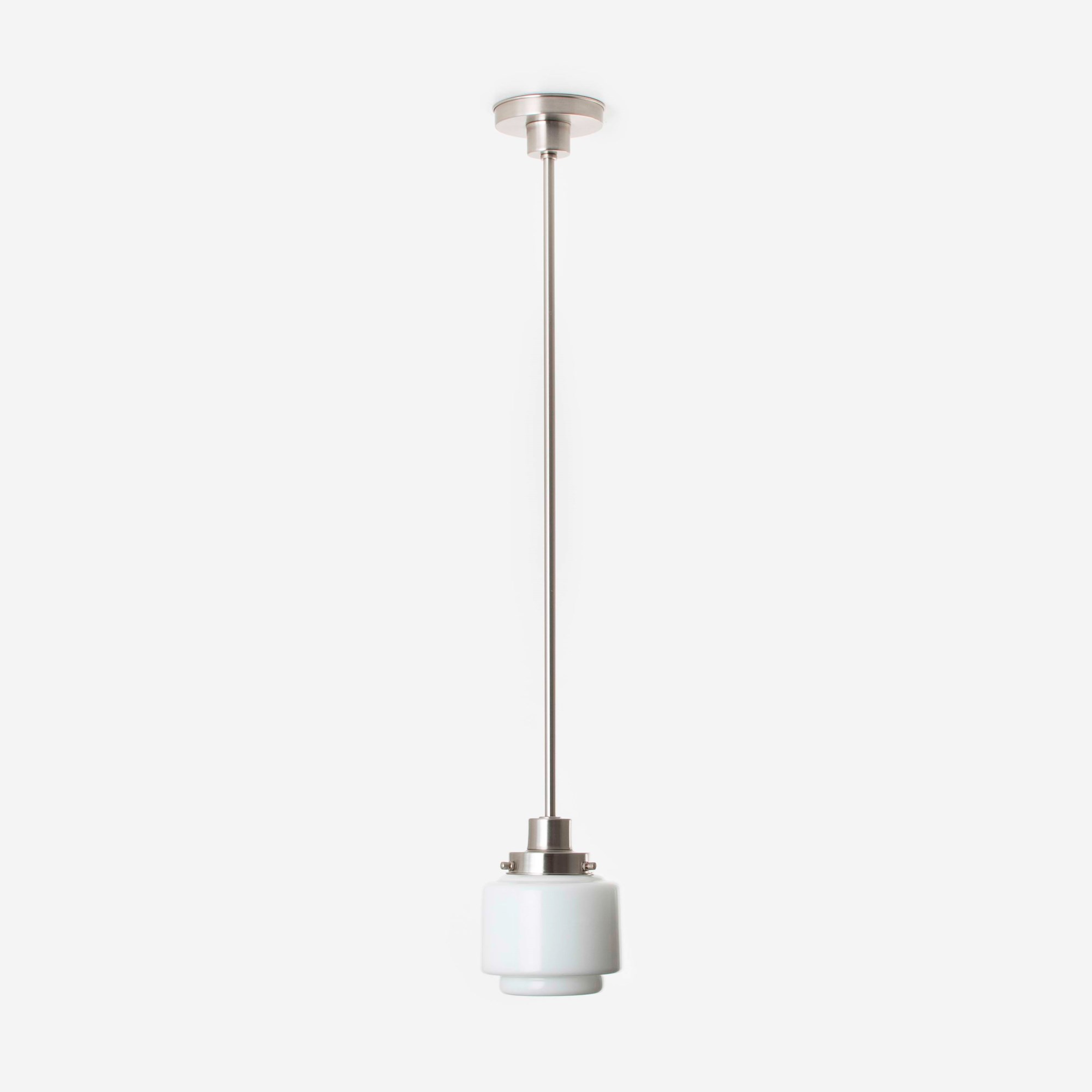 Élégant abat-jour en verre soufflé à la bouche en forme de cylindre étagé. Idéal pour un éclairage élégant et subtil d'une pièce. Verre blanc opale.