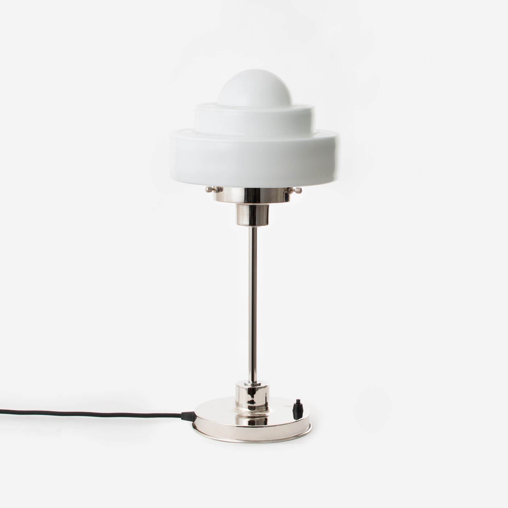 Des formes monumentales caractérisent cet abat-jour en verre. Le bouton sphérique en bas rompt la géométrie angulaire. Soufflé à la main en verre blanc opalin.