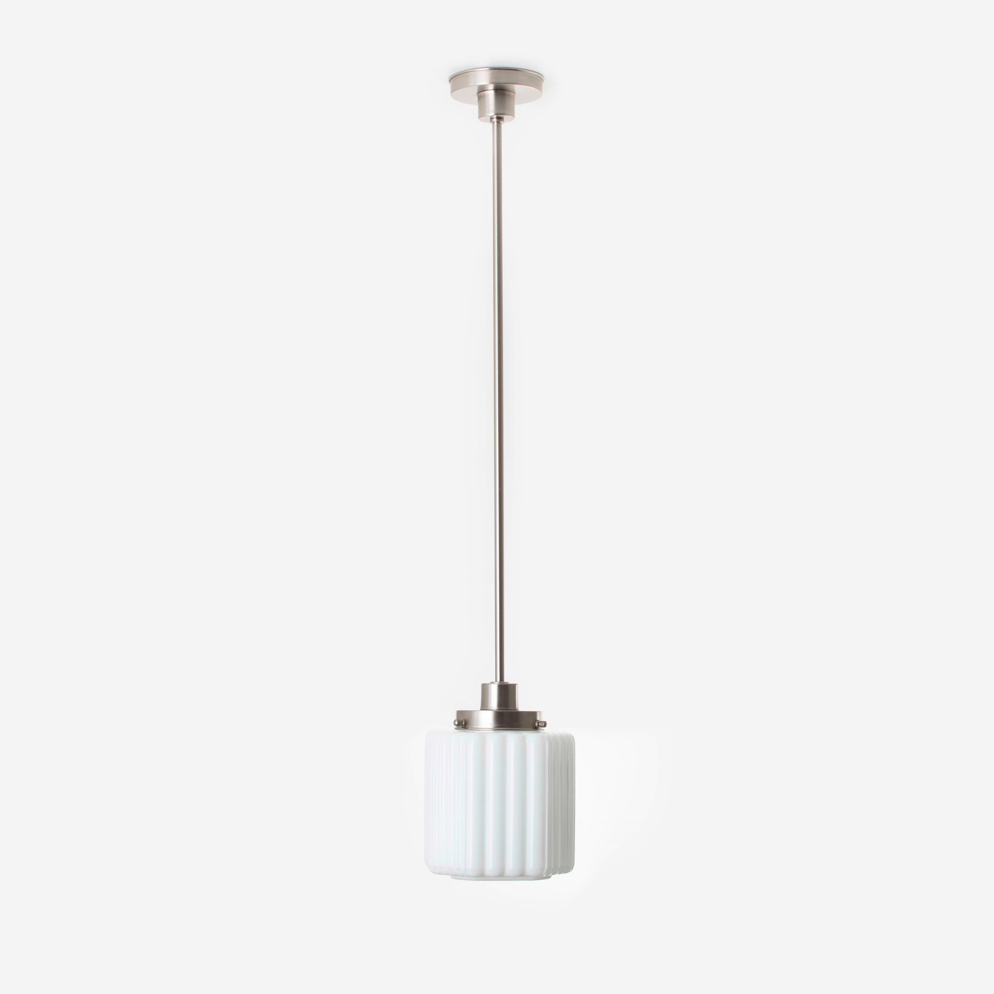 Une autre coiffe Art Déco. Inspiré par le théâtre Thalia à IJmuiden. Ce joyau a été transformé en 1910 d'une église en un théâtre (de cinéma), le style passant du gothique à l'école d'Amsterdam. Verre blanc opale.