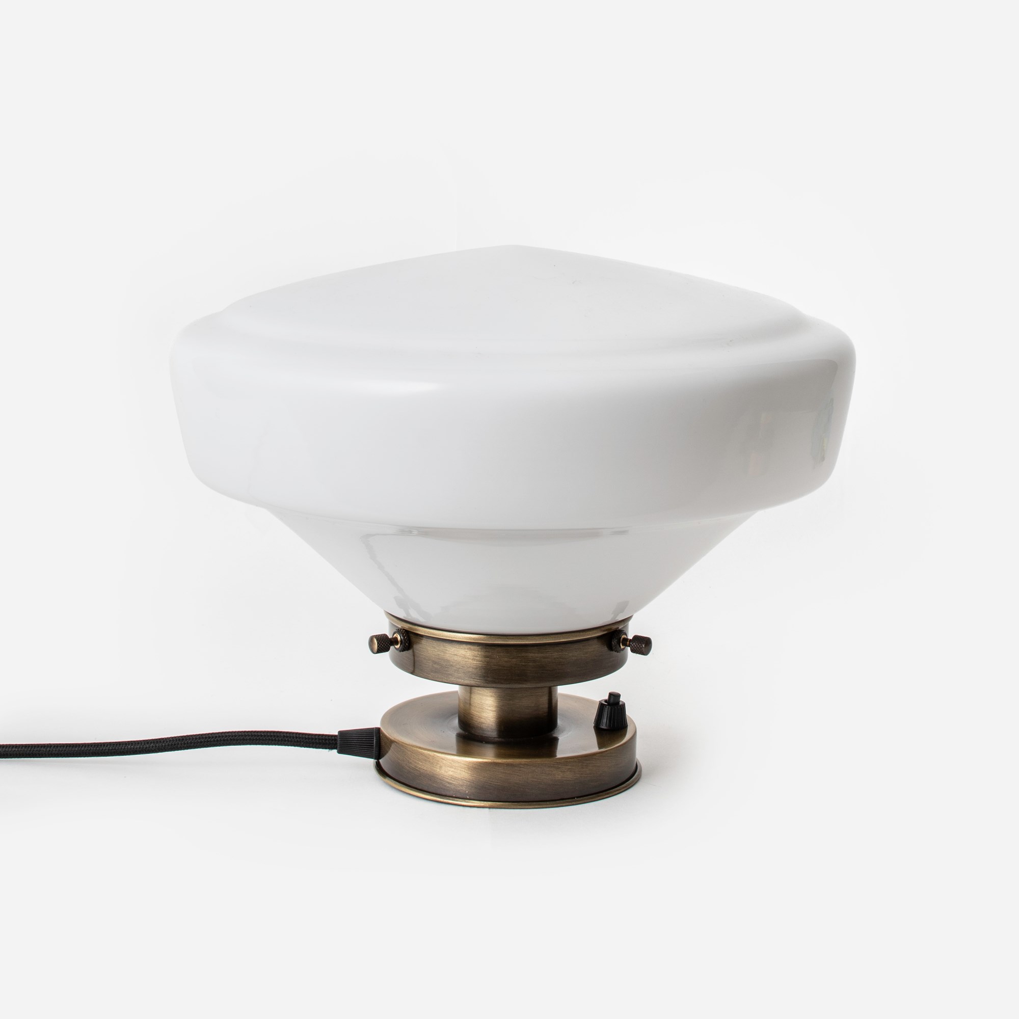 Un cordon en lin noir complété par un capuchon de plafond en bronze (avec un œillet de suspension, pour faciliter le montage au plafond).