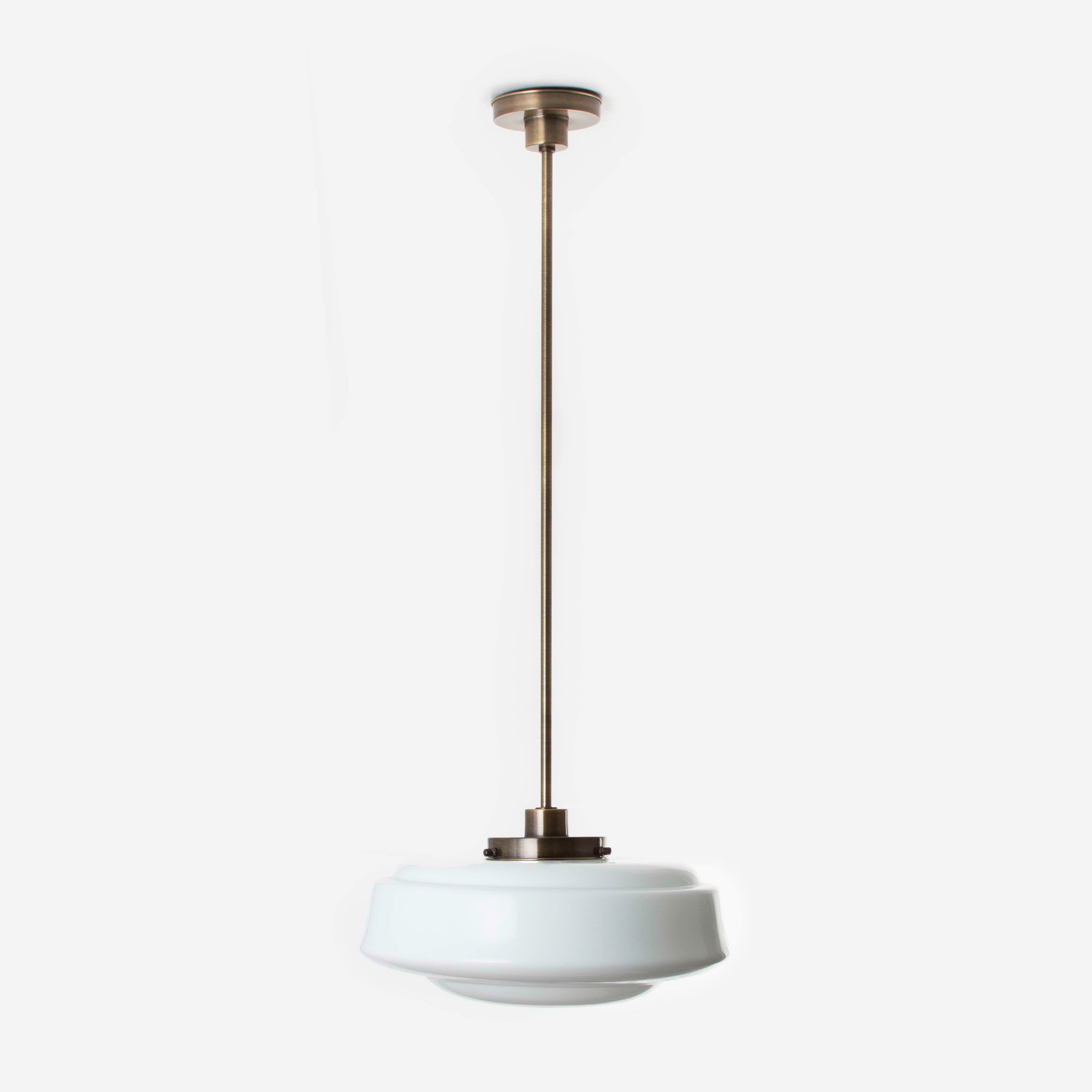 Attrayant abat-jour en verre de forme arrondie avec des détails arrondis. Soufflé à la bouche en verre blanc opalin.