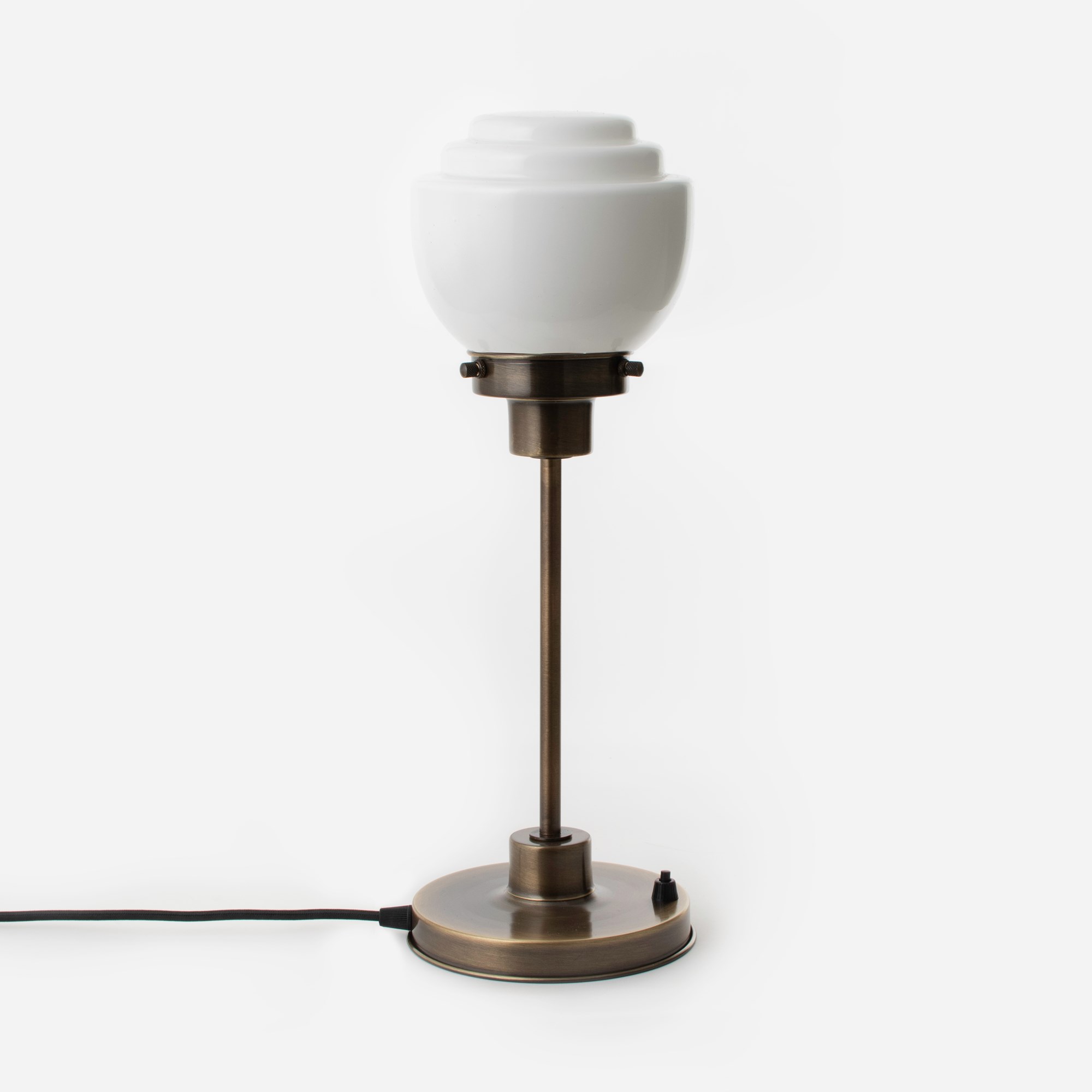 Un cordon en lin noir complété par un capuchon de plafond en bronze (avec un œillet de suspension, pour faciliter le montage au plafond).
