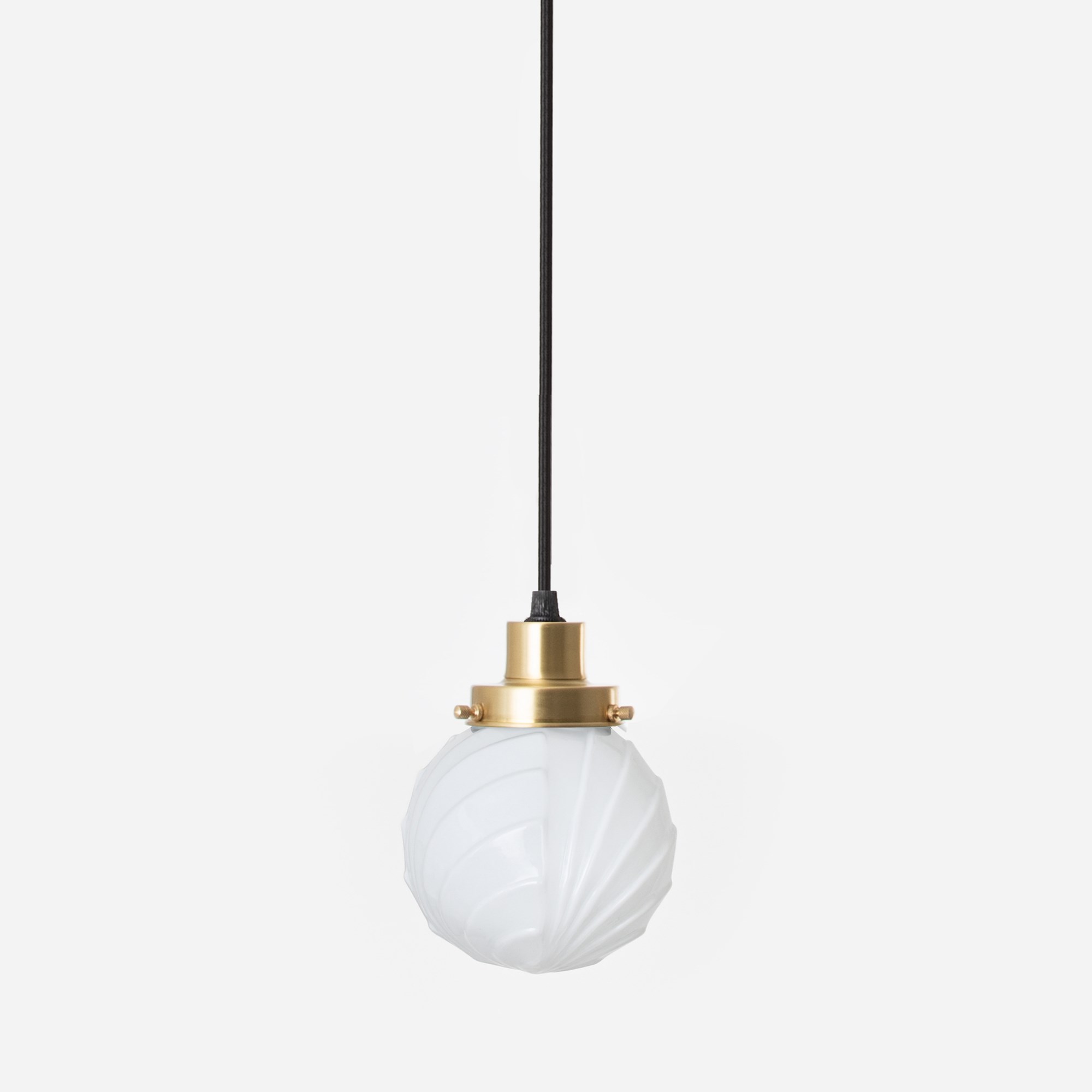 Abat-jour en verre de type bulbe Art Nouveau aux formes asymétriques et changeantes. Les lignes gracieuses et douces donnent un effet ludique. Verre blanc opale.